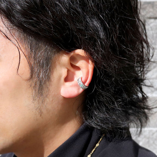 SV925 イヤーカフ 唐草 片耳用 ワイド 幅広 手彫り メンズ 選べる 誕生石 K10 K18 Pt900 彫金 太め フープイヤーカフ ペア (品番 me-0062-c-m)