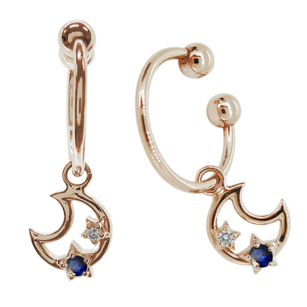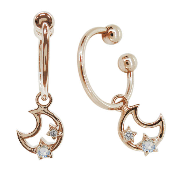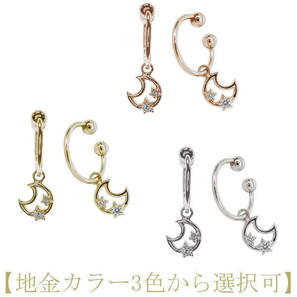 イヤーカフ レディース 星 月 フープイヤリング 選べる誕生石 天然石 k10 k18 pt900 両耳 揺れる ノンホールピアス star スター moon ムーン