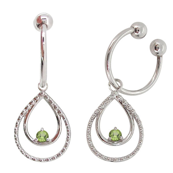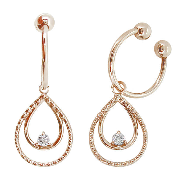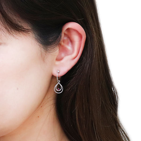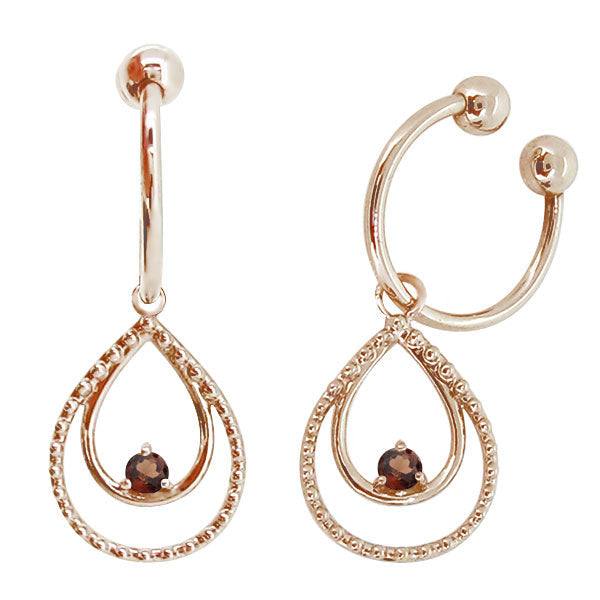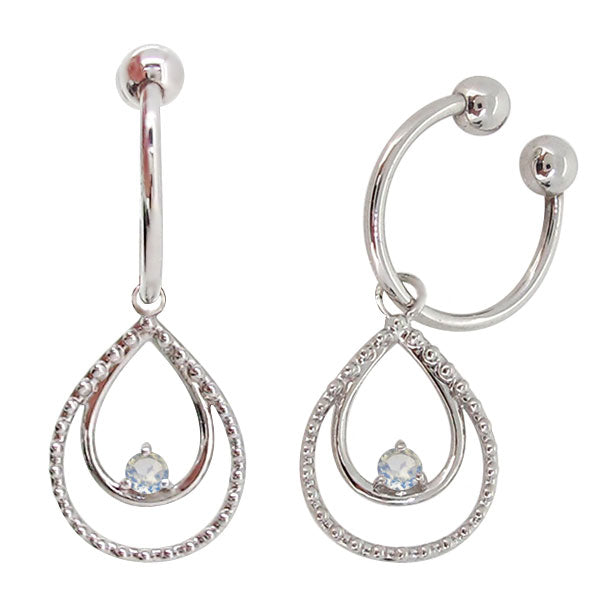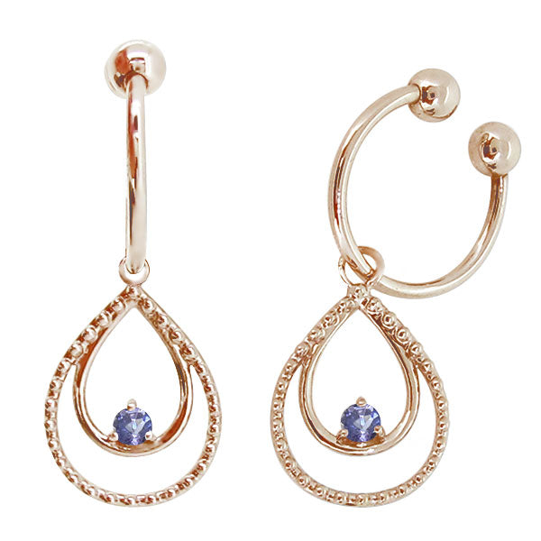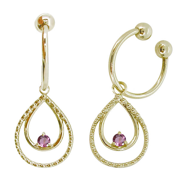 誕生石12石を使用した、雫(しずく)モチーフのフープイヤリングです。動くたびにキラキラと揺れて輝く雫型のデザインが耳元を華やかに彩ります。耳にはめ込むタイプなので、ピアスホールがあいていない方もお楽しみいただけます。