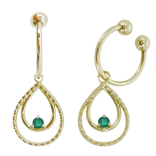 ドロップ フープイヤリング 一粒 レディース 揺れる イヤーカフ K10 K18 PT900 選べる誕生石 しずく ダブル 天然石 ノンホールピアス 雫 両耳セット drop