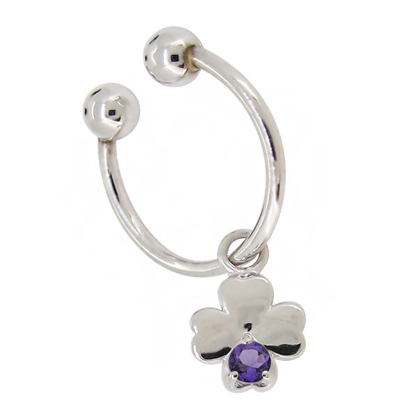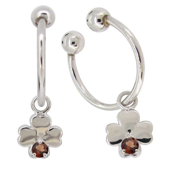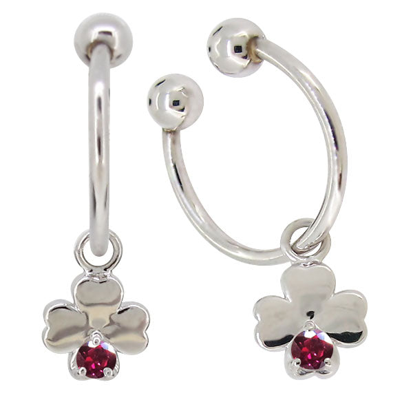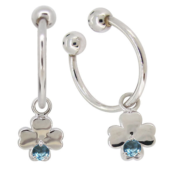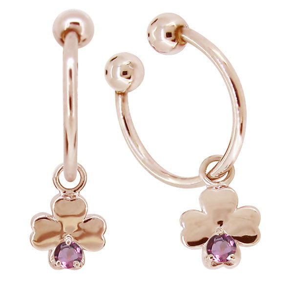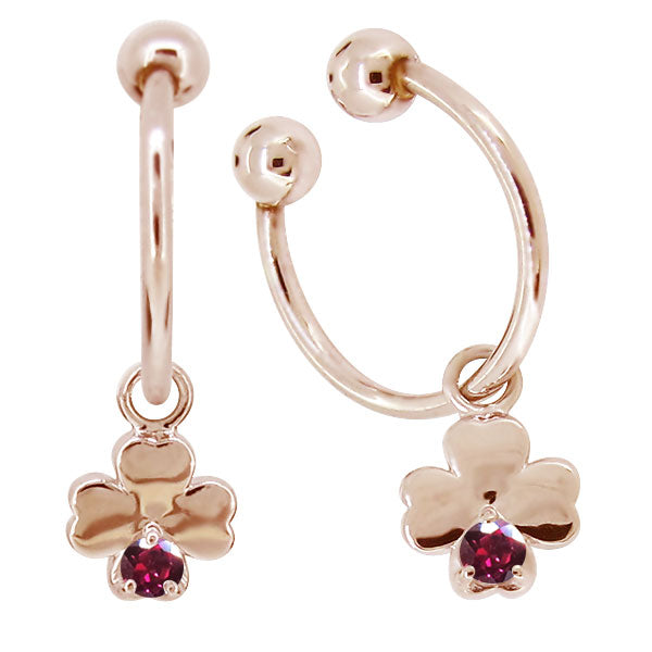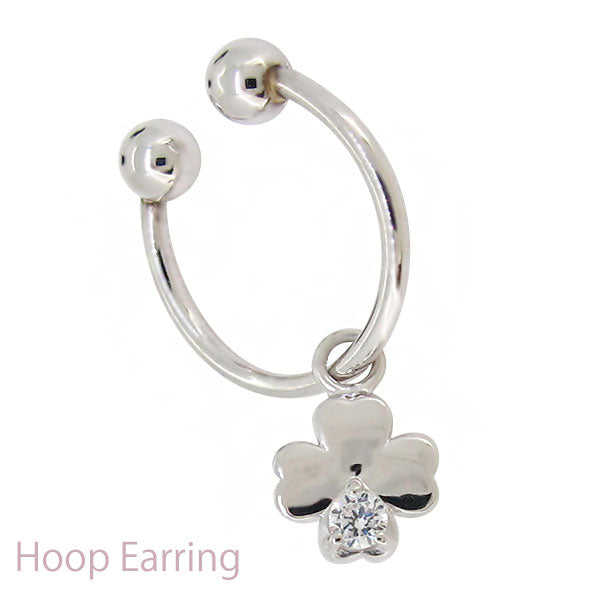 誕生石12石を使用した、四つ葉のクローバーのフープイヤリングです。フープイヤリングから揺れるクローバーのチャームが目を惹く可愛さです。ピアスホールが空いていなくても楽しめる、耳に挟むタイプのフープイヤリングです。
