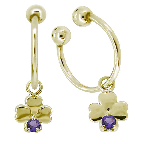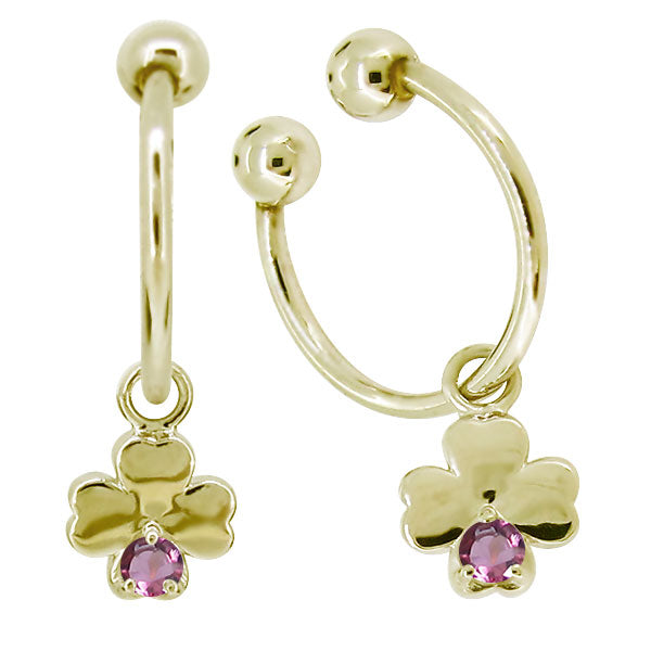 レディース クローバー フープイヤリング 四つ葉 イヤーカフ 選べる誕生石 一粒 天然石 k10 k18 pt900 両耳 チャーム four Leaf Clove Hoop Earring