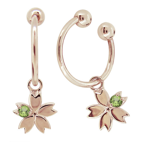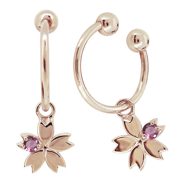 誕生石12石を使用した、桜モチーフのフープイヤリングです。耳に挟むタイプですので、ピアスホールがあいていない方もお楽しみいただけます。シンプルなデザインながら揺れる桜の花が可憐でかわいらしく、プレゼントなどにもおすすめです。