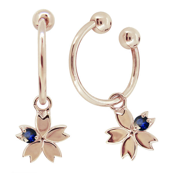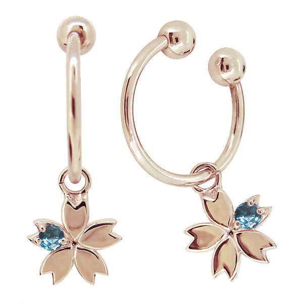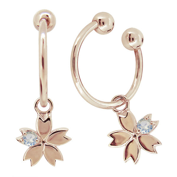 チャームイヤリング レディース イヤーカフ 揺れる 桜 sakura 選べる誕生石 さくら 天然石 K10 K18 PT900 一粒 サクラ 花 フープイヤリング 両耳用