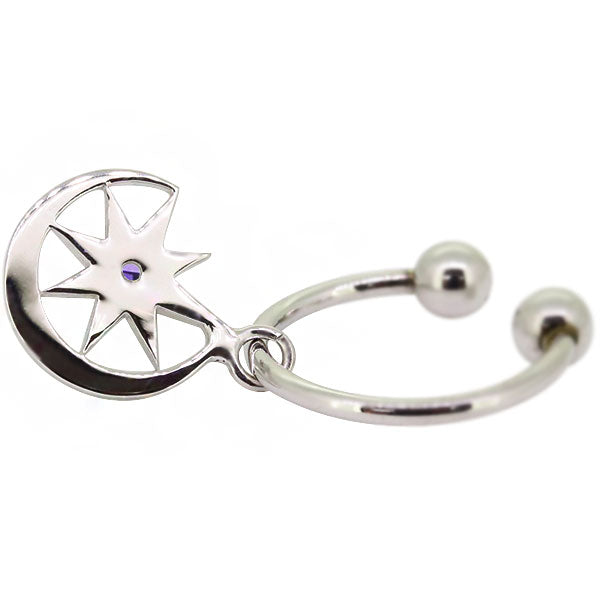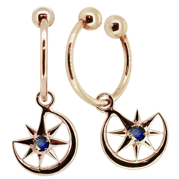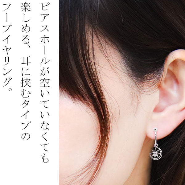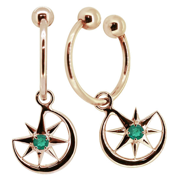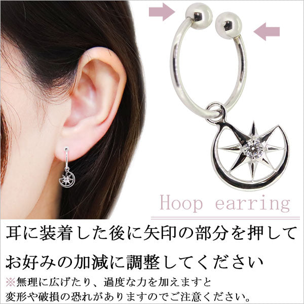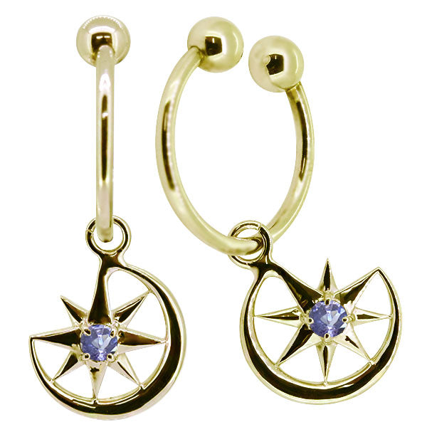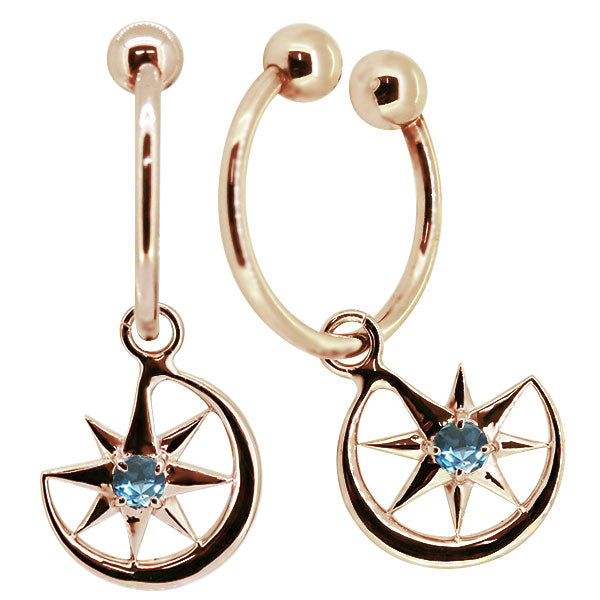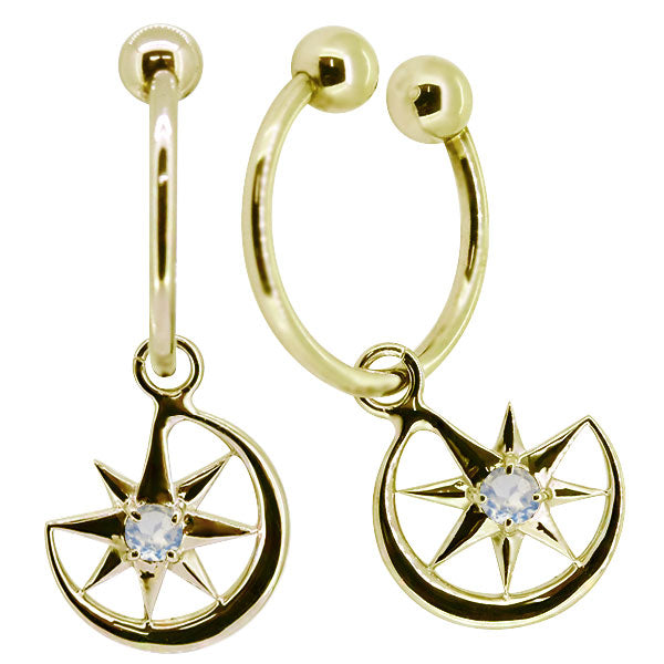 三日月 フープイヤリング レディース イヤーカフ 揺れる 月 星 選べる誕生石 天然石 10金 18金 プラチナ 一粒 両耳 moon star Hoop Earring