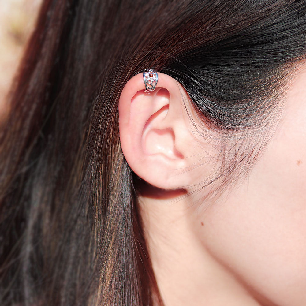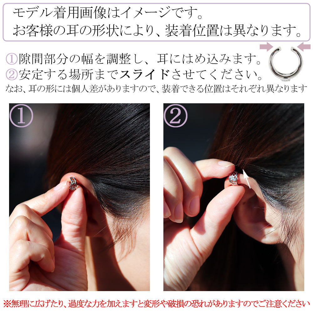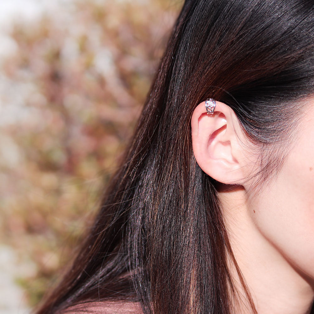 誕生石12石を使用した、唐草(アラベスク)モチーフイヤーカフです。繊細な唐草模様が美しく華やかに耳元を飾ります。耳にはめ込むタイプなので、ピアスホールがない方も簡単に装着することができます。重ね付けをしたり、お好きな位置につけてお楽しみください。
