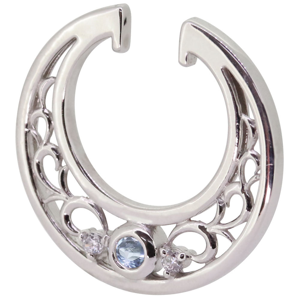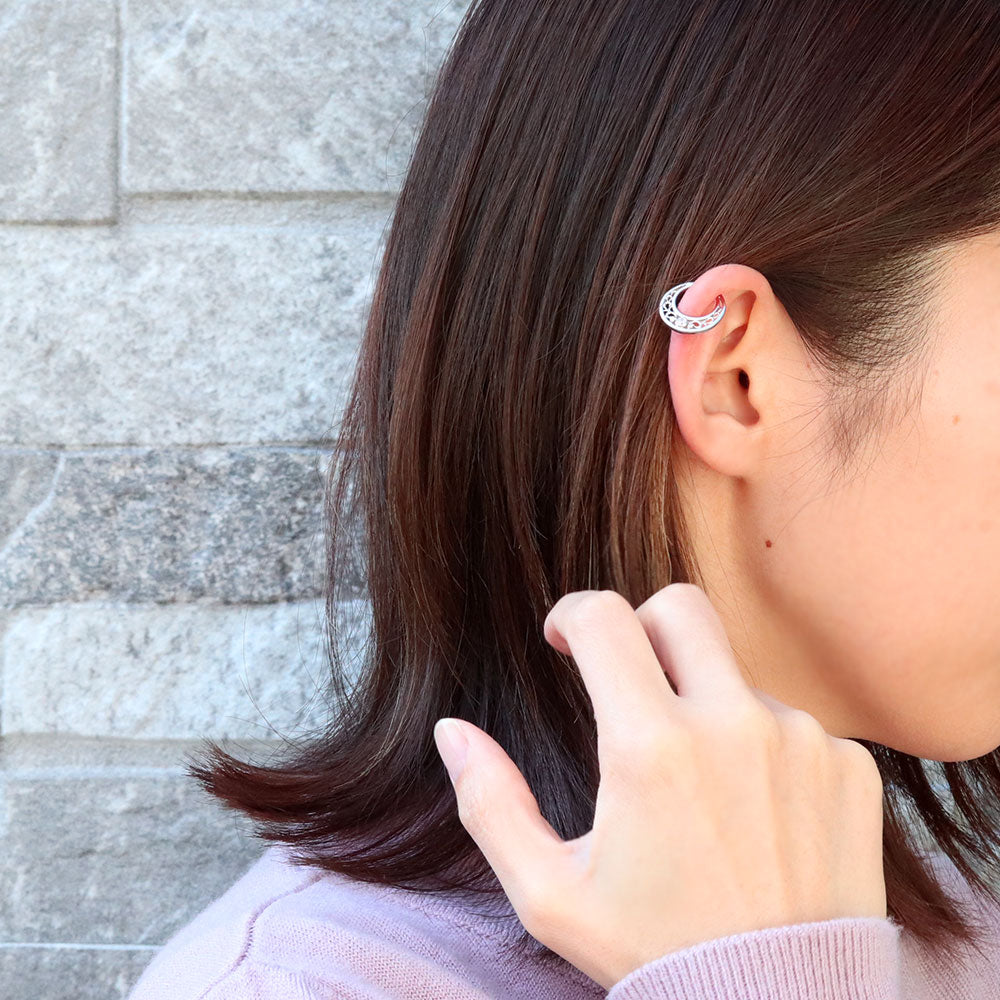 誕生石12石を使用した、唐草(アラベスク)モチーフのイヤーカフです。しなやかで繊細な唐草の透かし模様が、美しく上品に耳元を飾ってくれます。耳にはめ込むタイプなので、ピアスホールがない方も簡単に装着することができます。重ね付けをしたりお好きな位置につけてお楽しみください。