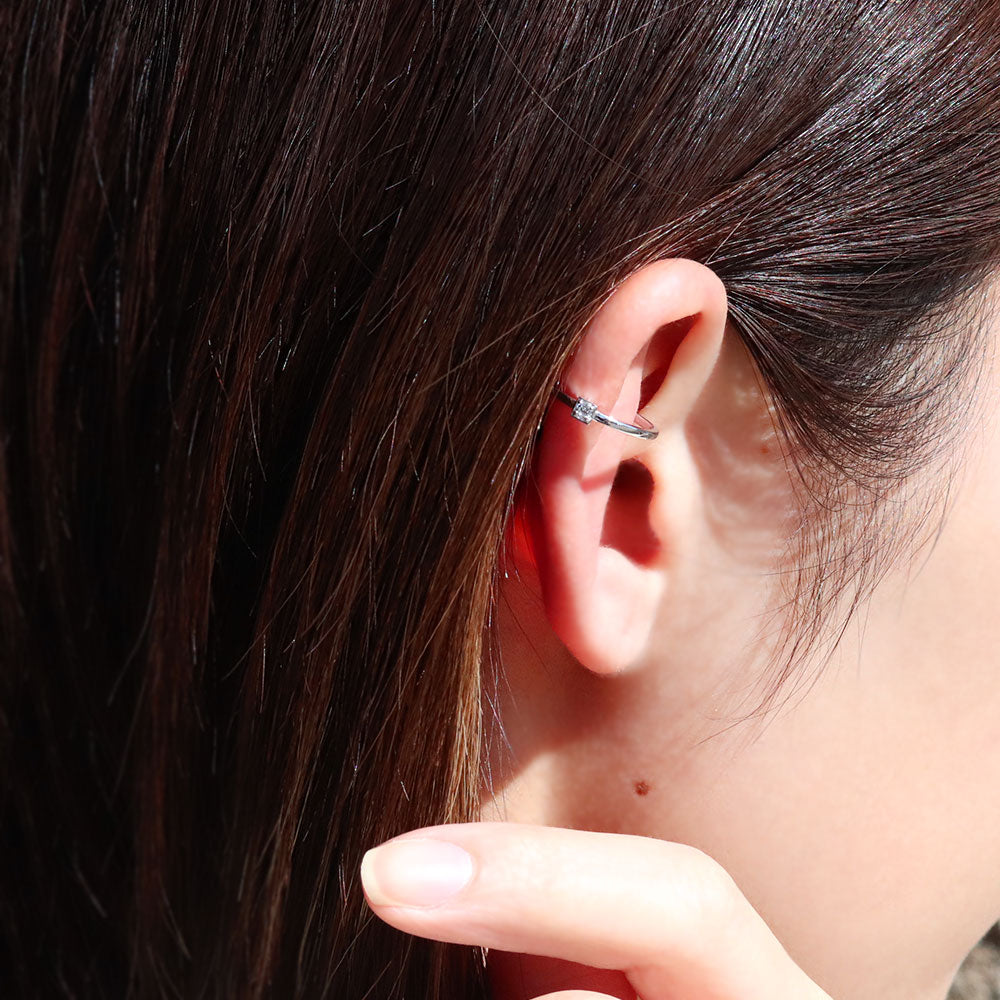 誕生石12石を使用した、シンプルデザインのイヤーカフです。一粒の誕生石をあしらった細身のデザインで、ピアスやイヤリングの重ね付けにもおすすめです。耳にはめ込むタイプなので、ピアスホールがない方も簡単に装着することができます。重ね付けをしたりお好きな位置につけてお楽しみください。