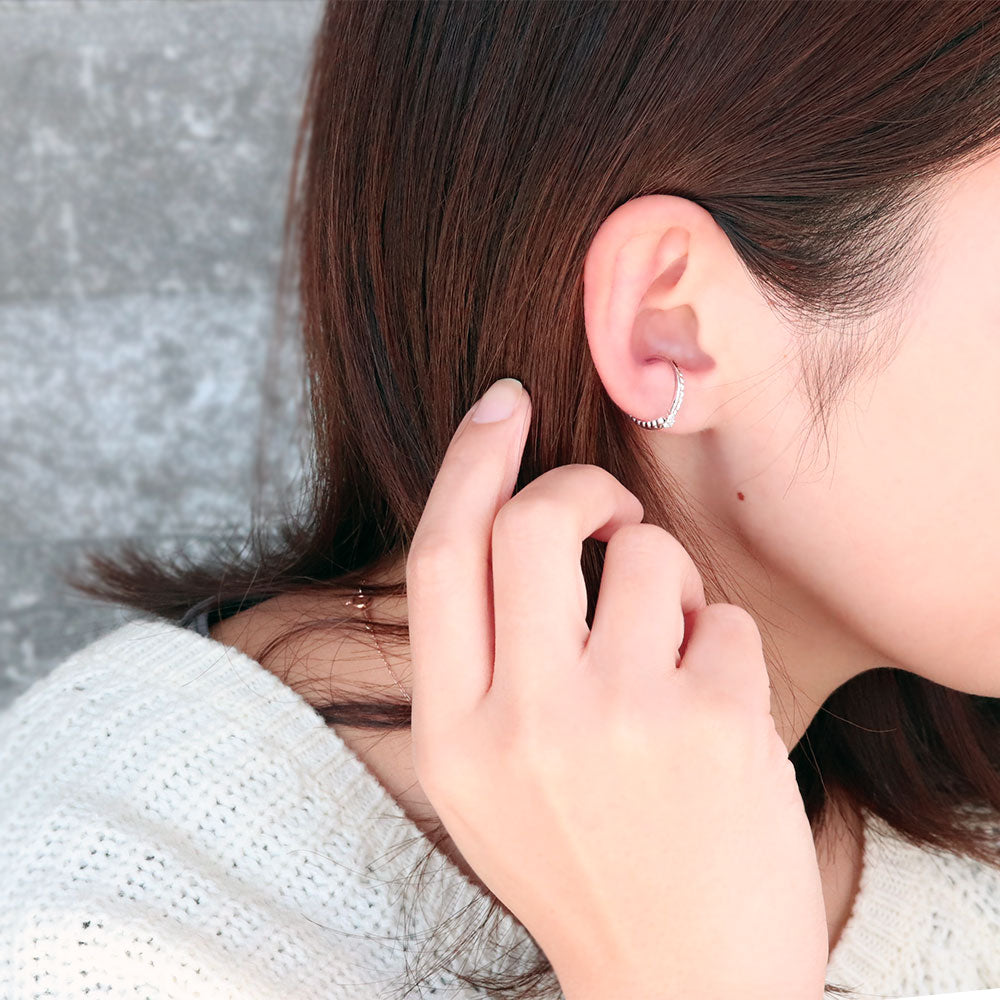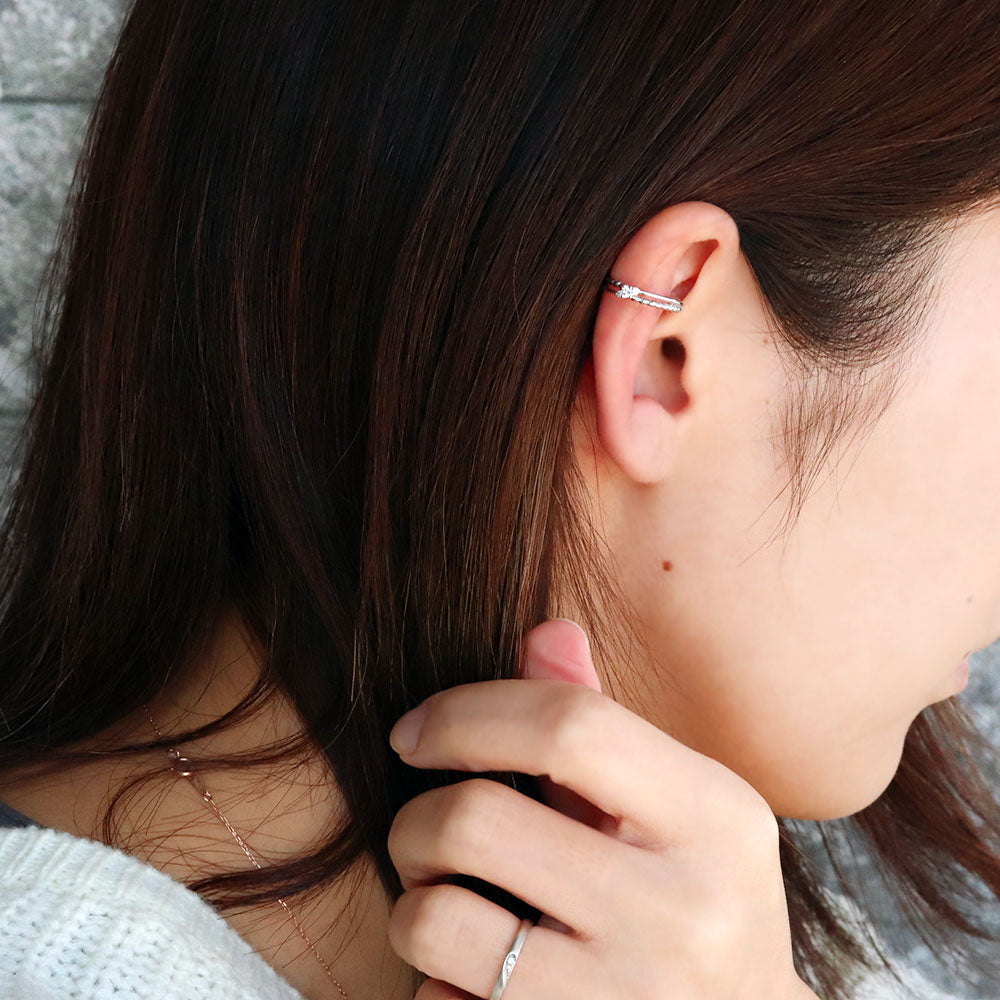 誕生石12石を使用した、シンプルデザインのイヤーカフです。2本のラインがクロスした細身のデザインになっています。どんなコーデにも合わせやすく上品に飾ってくれます。耳にはめ込むタイプなので、ピアスホールがない方も簡単に装着することができます。重ね付けをしたりお好きな位置につけてお楽しみください。