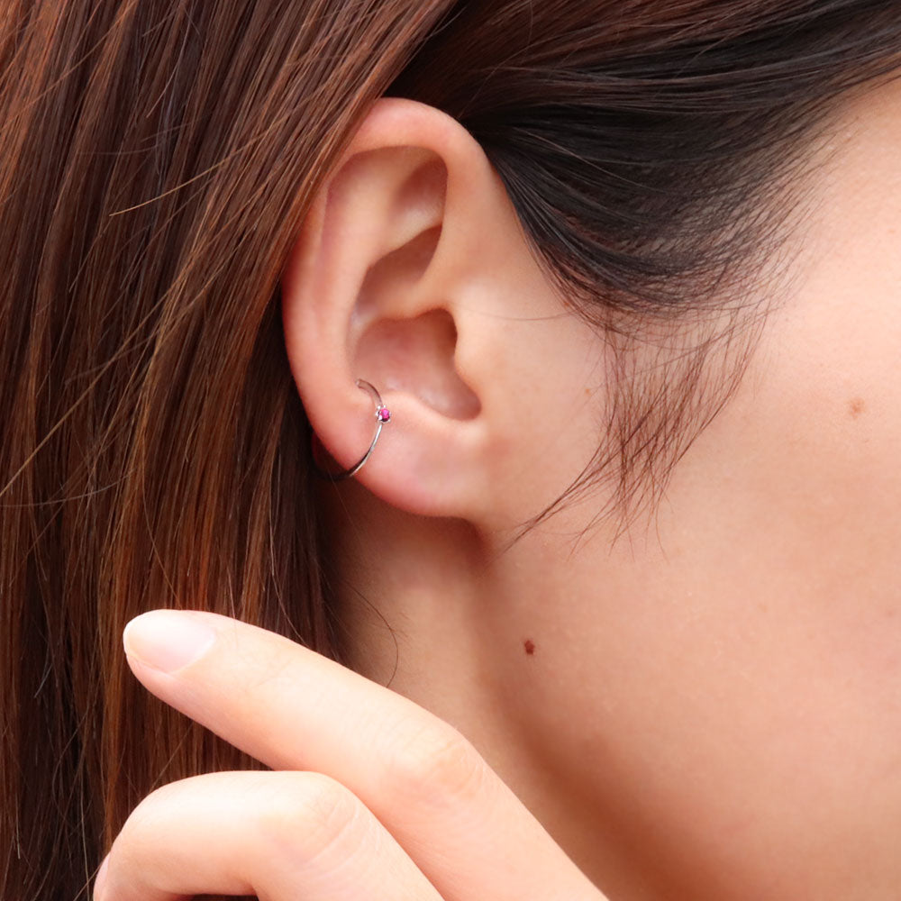 誕生石12石を使用した、王冠モチーフのイヤーカフです。華奢でシンプルなデザインが耳元を上品に美しく飾ります。シーンやコーディネートを選ばない、普段使いにも合わせやすいアイテムです。耳にはめ込むタイプなので、ピアスホールがない方も簡単に装着することができます。重ね付けをしたりお好きな位置につけてお楽しみください。