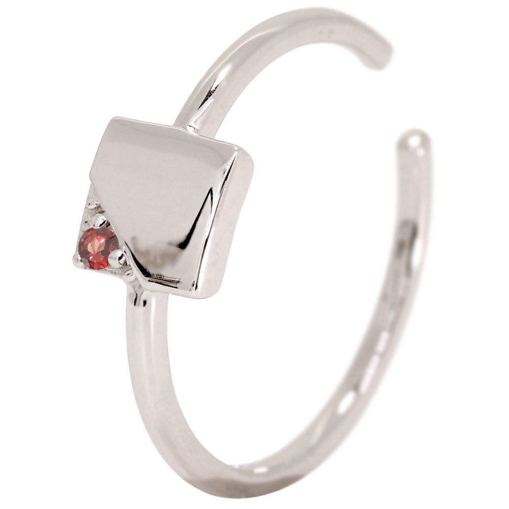 誕生石8石を使用した、幾何学デザイン(四角形)のイヤーカフです。華奢でシンプルなデザインが、女性の耳元を美しく飾ります。お好きな位置に付けたり、重ね付けをお楽しみください。耳にはめ込むタイプなので、ピアスホールがない方も簡単に装着することができます。