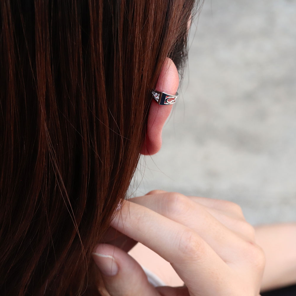 誕生石12石を使用した、リバーシブルデザインのイヤーカフです。繊細な唐草模様と誕生石をあしらった2wayデザインになっているので、その日の気分やコーデに合わせて楽しむ事が出来るアイテムです。耳にはめ込むタイプなので、ピアスホールがない方も簡単に装着することができます。重ね付けをしたり、お好きな位置につけてお楽しみください。