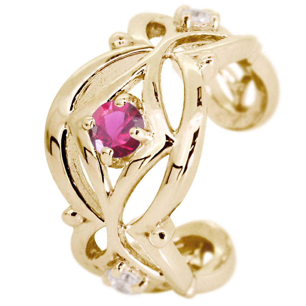 イヤカフ レディース ノンホールピアス ひし形 軟骨 女性 K10 K18 PT900 選べる誕生石 天然石 Ear Cuff 重ね付け イヤーカフ 菱形 片耳用