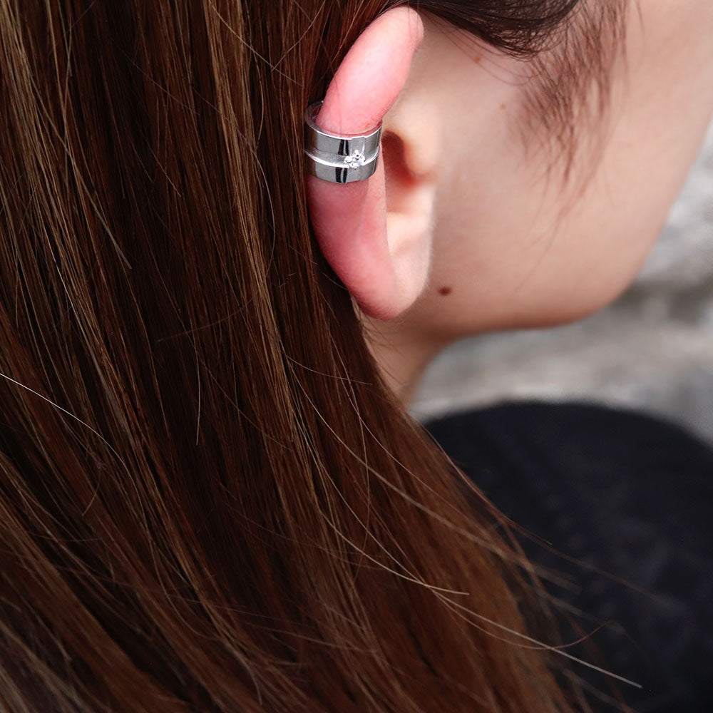 クロス イヤーカフ レディース 十字架 選べる誕生石 お揃い ユニセックス イヤカフ 誕生石 10金 18金 プラチナ 軟骨 太め 天然石 ノンホールピアス 片耳用