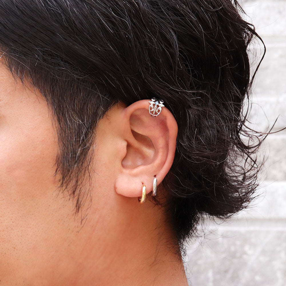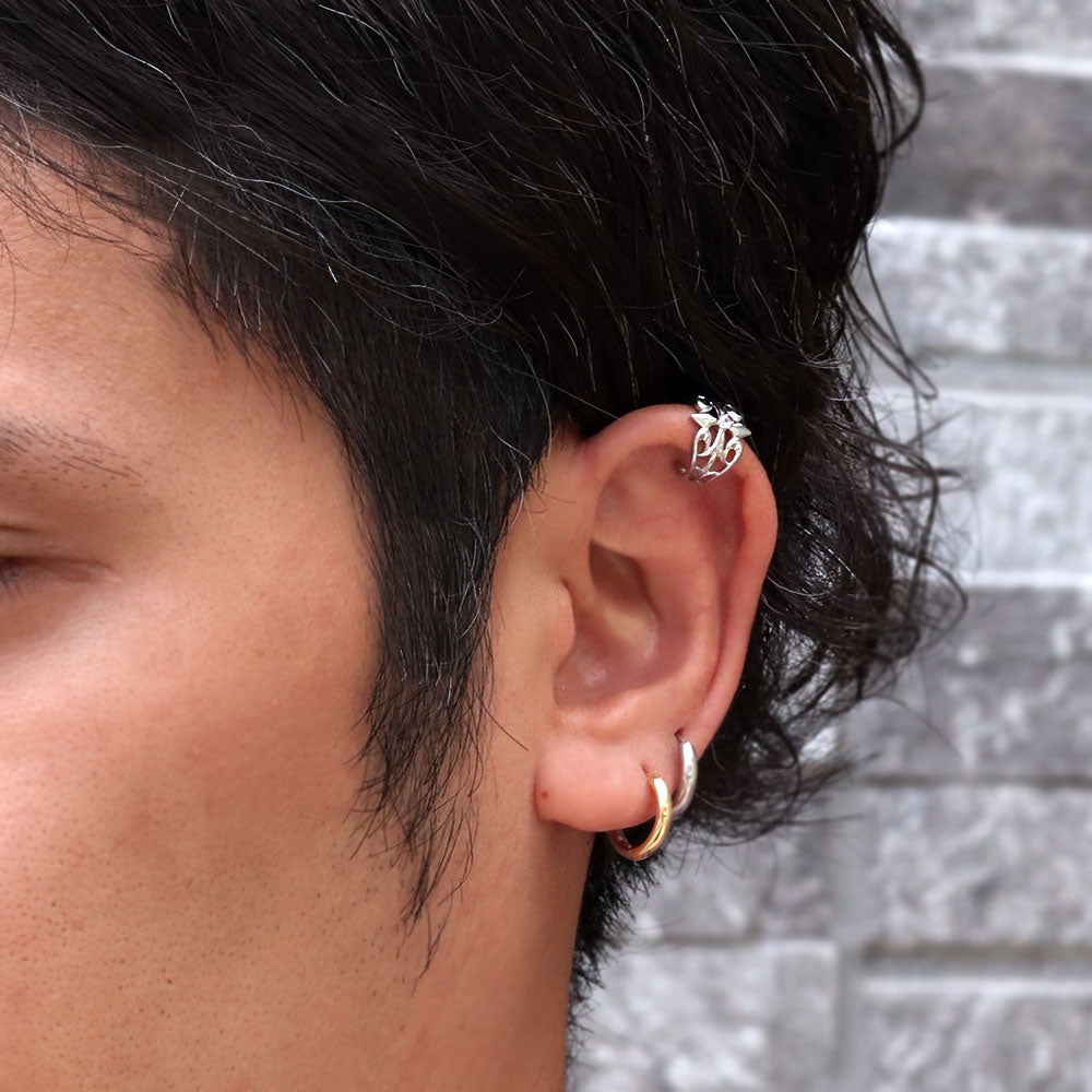 誕生石12石を使用した、クロスモチーフメンズイヤーカフです。繊細で美しい透かし模様に天然石が煌めくき、耳元をさり気なくおしゃれに飾ってくれるアイテムです。お好きな位置に付けたり、重ね付けにもおすすめです。耳にはめ込むタイプなので、ピアスホールがない方も簡単に装着することができます。ユニセックスデザインですのでレディースにもオススメですし、お揃いにしてもおしゃれな商品です。