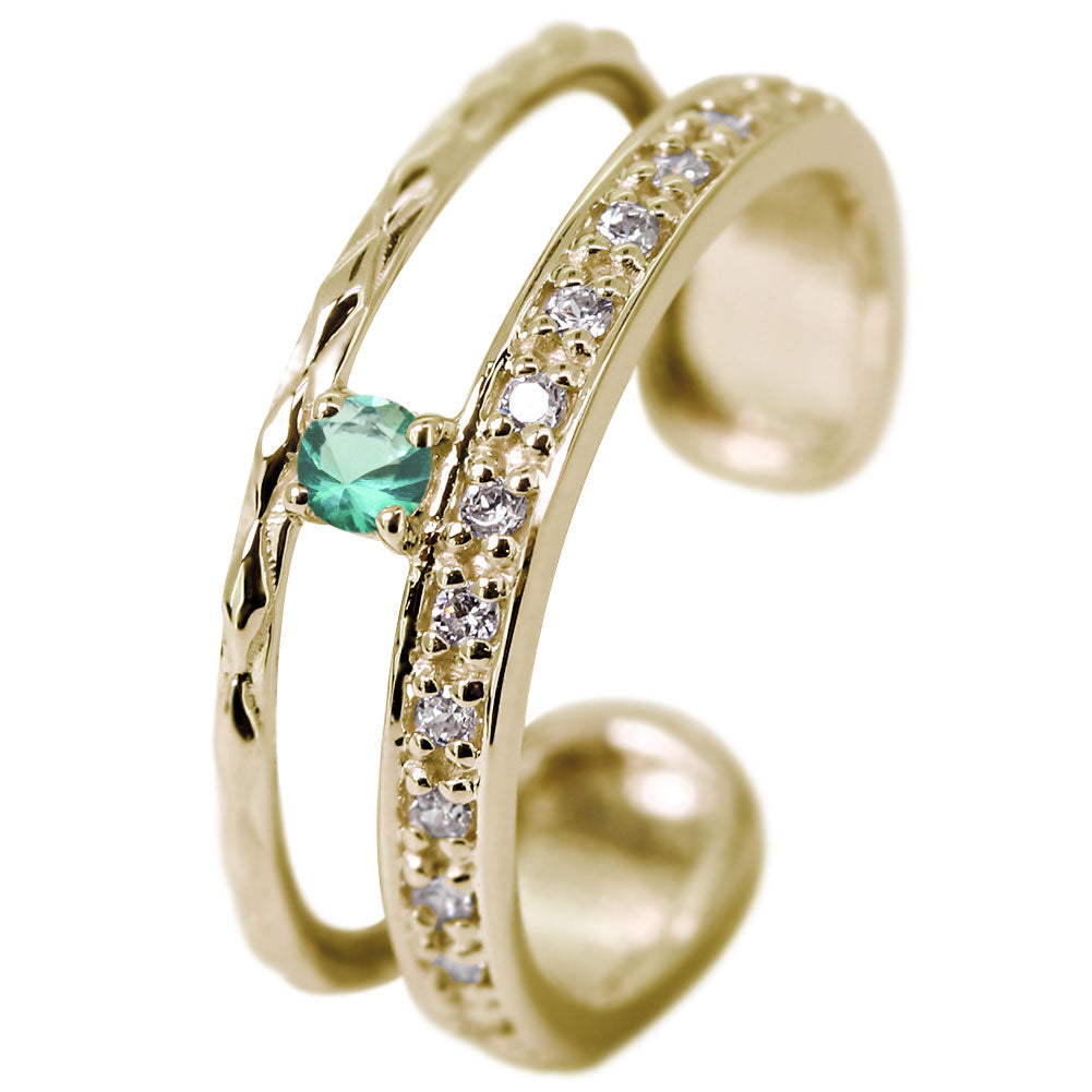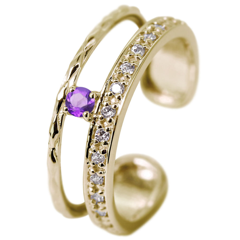 誕生石12石を使用した、2連デザインのイヤーカフです。キラキラと輝くダイヤモンドに誕生石をあしらった、シンプルで上品なデザインが身につけやすくなっています。耳にはめ込むタイプなので、ピアスホールがない方も簡単に装着することができます。重ね付けをしたりお好きな位置につけてお楽しみください。