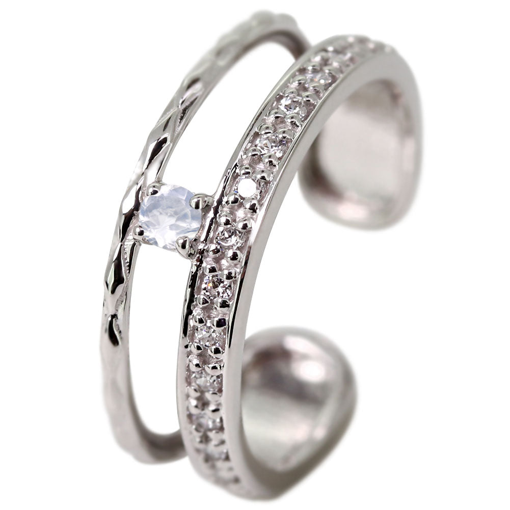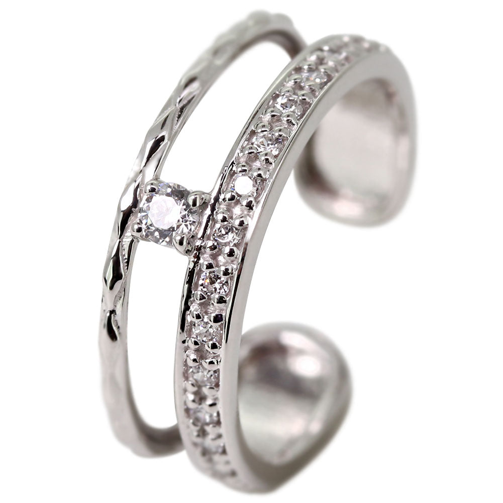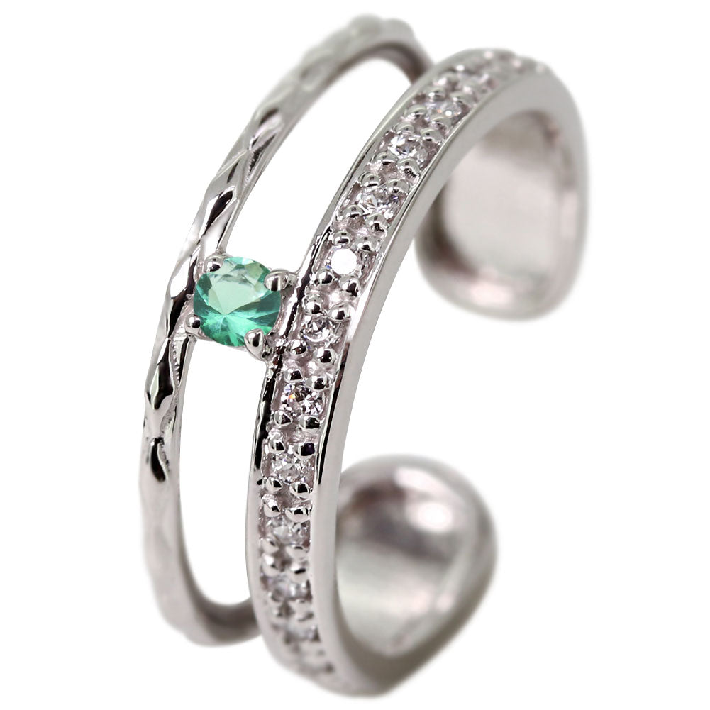 イヤーカフ レディース 2連 大ぶり ラインストーン ティアラ Ear Cuff tiara 選べる誕生石 天然石 10金 18金 プラチナ シルバー 片耳用 ノンホールピアス