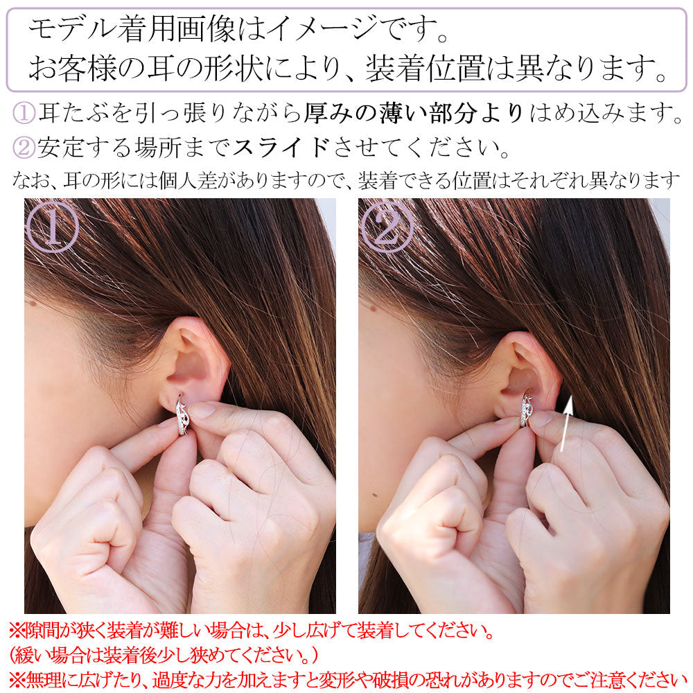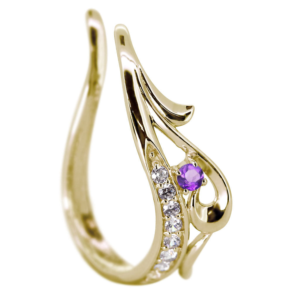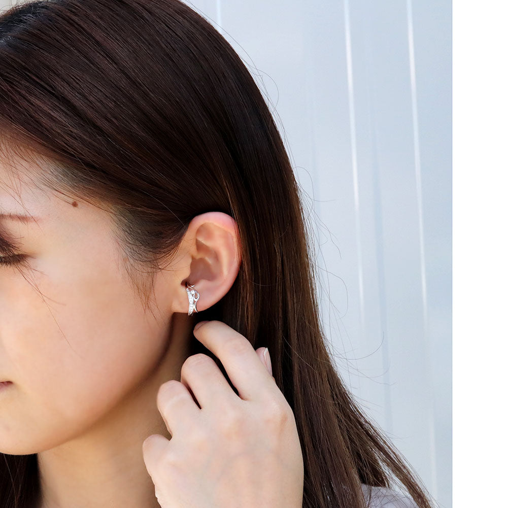 誕生石12石を使用した、唐草(アラベスク)モチーフのイヤーカフです。上品さをプラスした大人可愛いデザインで、耳元でダイヤモンドが美しく輝きます。耳にはめ込むタイプなので、ピアスホールがない方も簡単に装着することができます。重ね付けをしたりお好きな位置につけてお楽しみください。