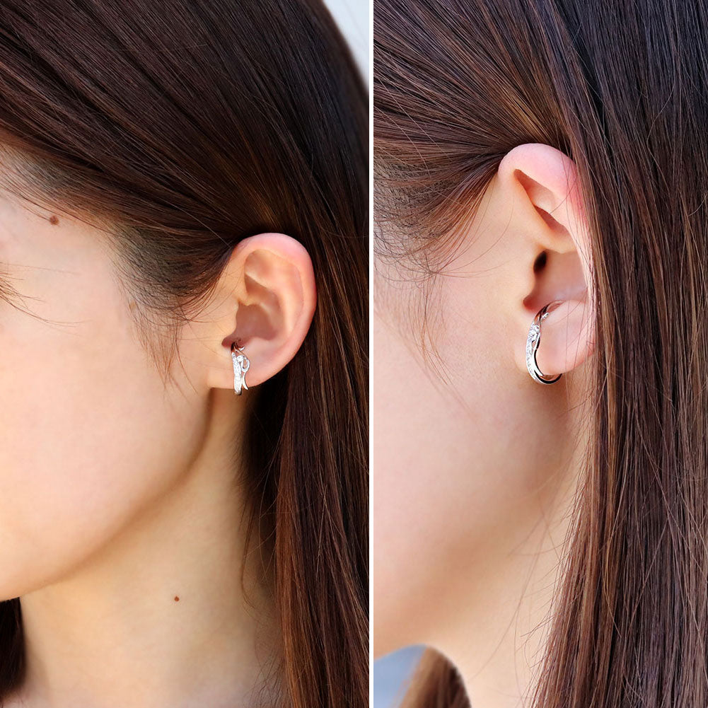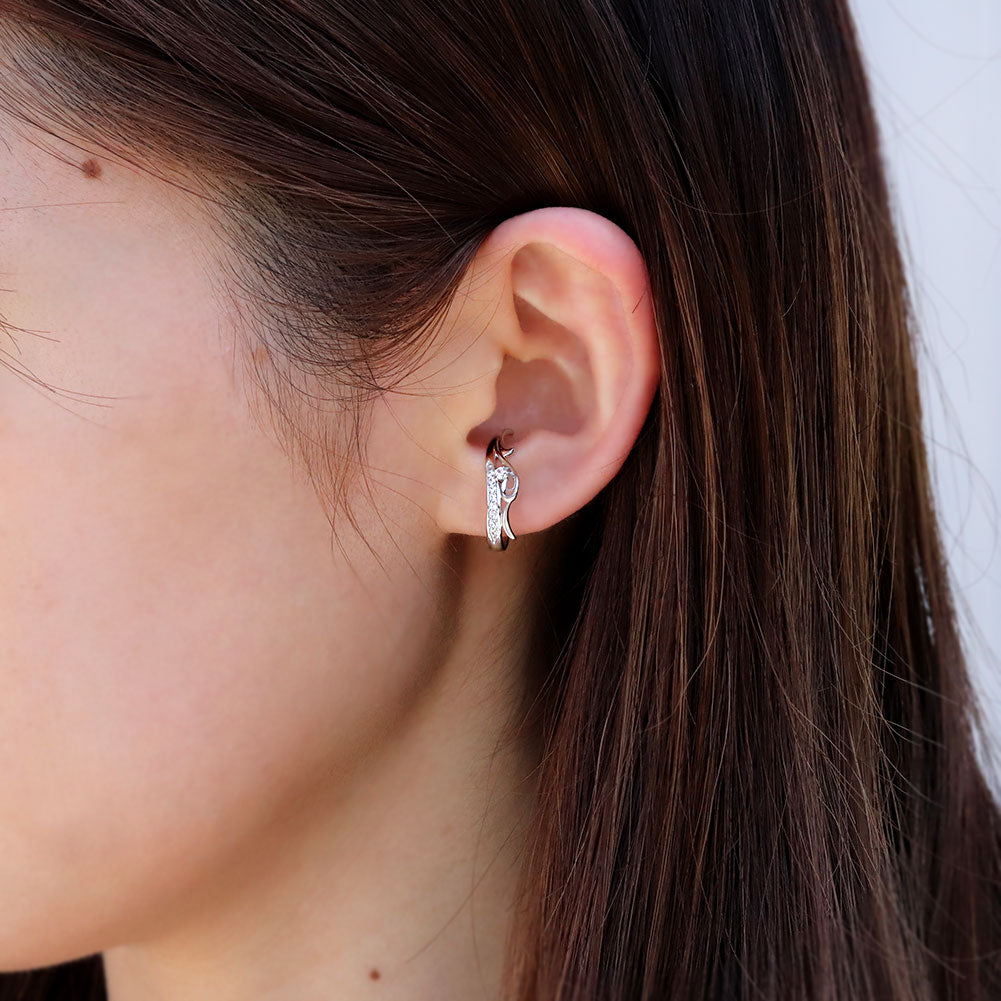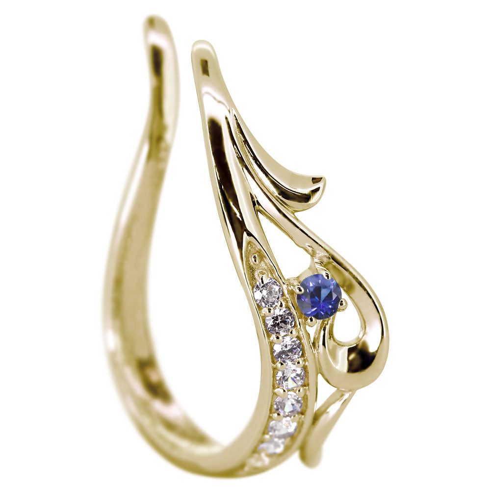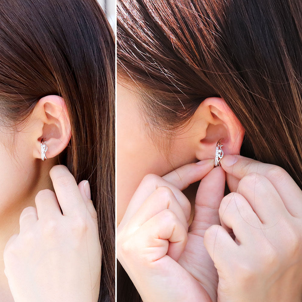 誕生石12石を使用した、唐草(アラベスク)モチーフのイヤーカフです。上品さをプラスした大人可愛いデザインで、耳元でダイヤモンドが美しく輝きます。耳にはめ込むタイプなので、ピアスホールがない方も簡単に装着することができます。重ね付けをしたりお好きな位置につけてお楽しみください。