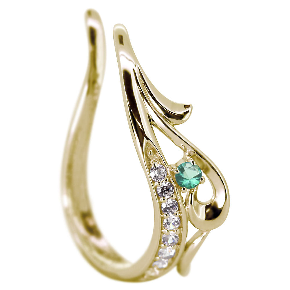 レディース イヤーカフ 唐草 大ぶり ラインストーン 選べる誕生石 天然石 片耳用 アラベスク Ear Cuff Rhinestone diamond k10 k18 pt900 sv925