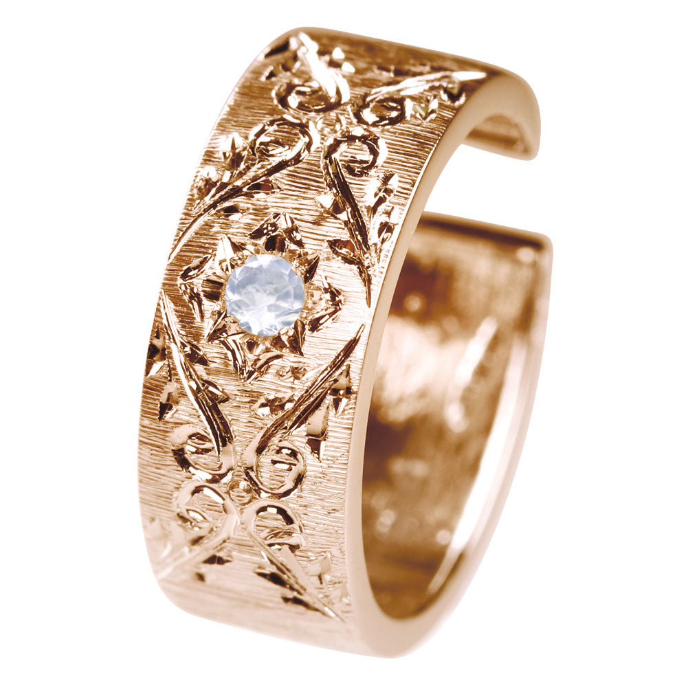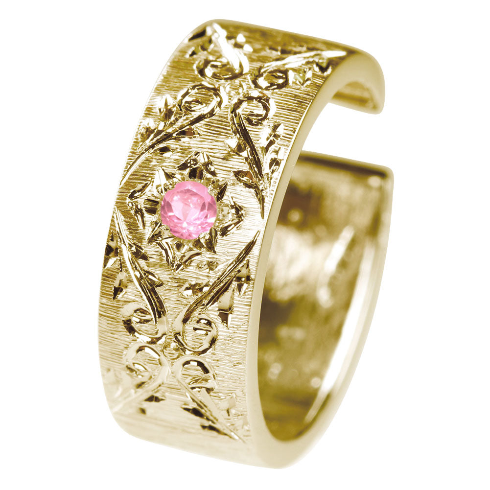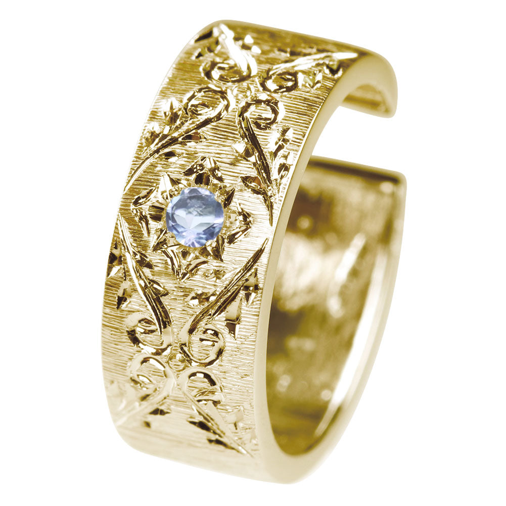 K18 フープ イヤーカフ 幅広 メンズ 片耳用 唐草 手彫り ワイド 太め pt900 18k 10k sv925 選べる 誕生石 天然石 彫り 彫金 (品番 me-0062-b-m)