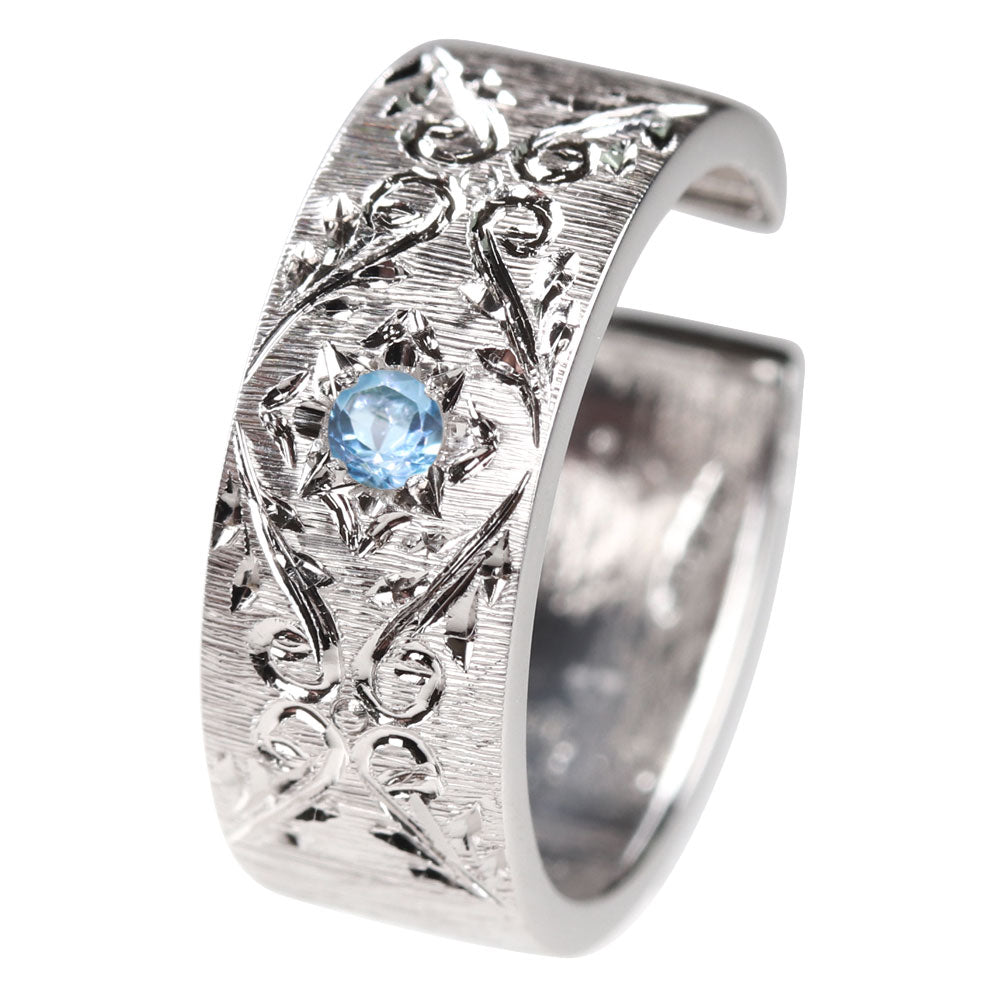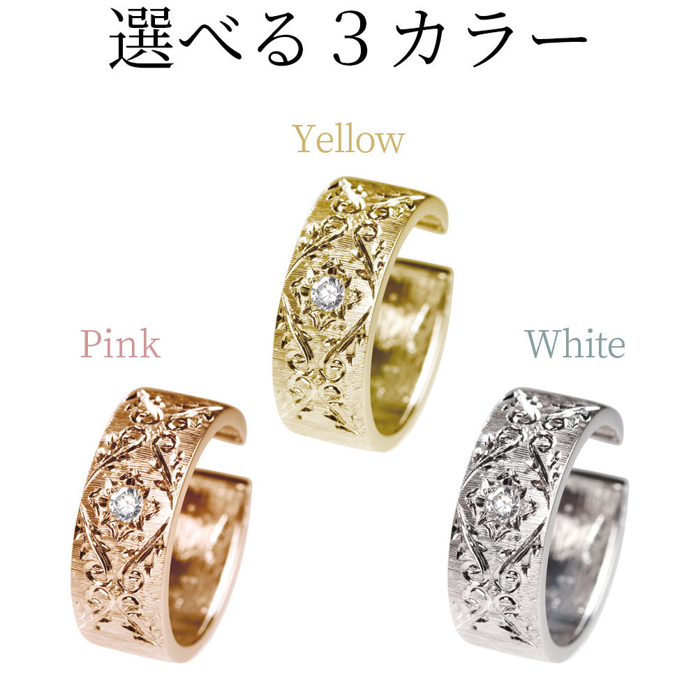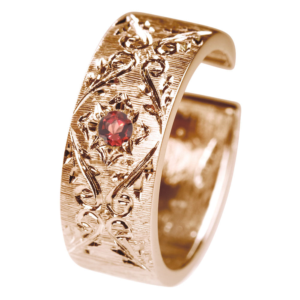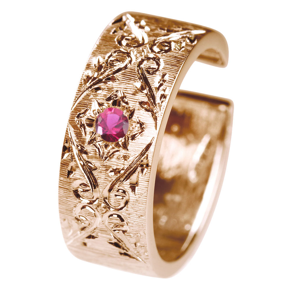 K18 フープ イヤーカフ 幅広 メンズ 片耳用 唐草 手彫り ワイド 太め pt900 18k 10k sv925 選べる 誕生石 天然石 彫り 彫金 (品番 me-0062-b-m)
