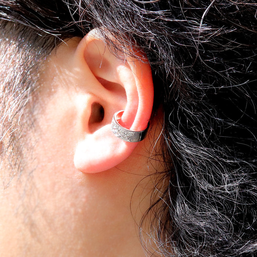 誕生石12石を一粒使用した、メンズイヤーカフです。ハワイアンジュエリーとは一味違う洋彫りジュエリー。職人が一つ一つ丁寧に仕上げたオリジナルのデザインです。耳にはめ込むタイプなので、ピアスホールがない方も簡単に装着することができます。重ね付けをしたり、お好きな位置につけてお楽しみください。
