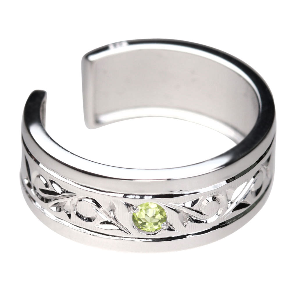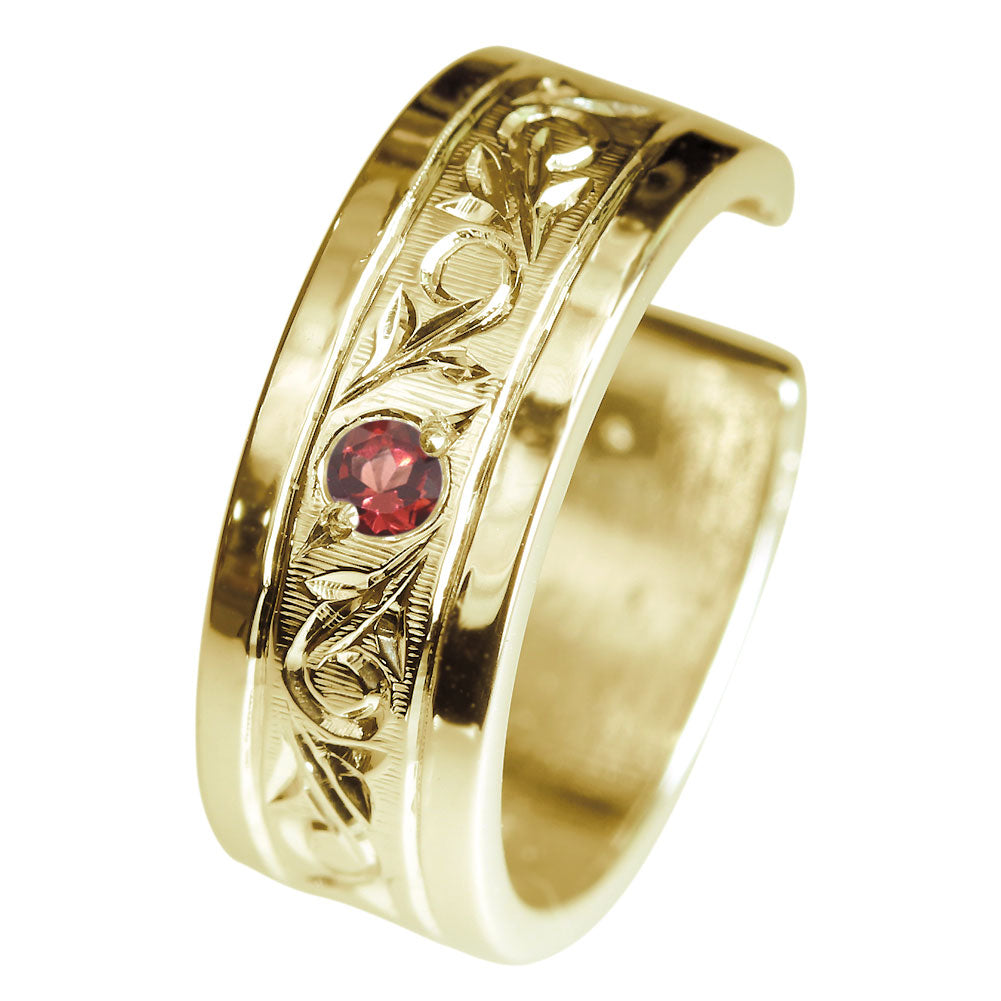 誕生石12石を一粒使用した、レディースイヤーカフです。ハワイアンジュエリーとは一味違う洋彫りジュエリー。職人が一つ一つ丁寧に仕上げたオリジナルのデザインです。耳にはめ込むタイプなので、ピアスホールがない方も簡単に装着することができます。重ね付けをしたり、お好きな位置につけてお楽しみください。
