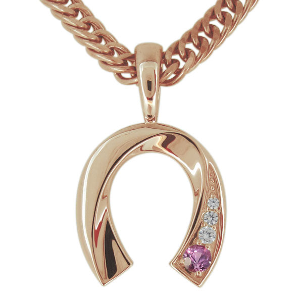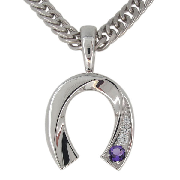 誕生石13石・希少石アレキサンドライトを使用した、馬蹄(ホースシュー)モチーフのメンズネックレス(ペンダント)です。人気の馬蹄モチーフに喜平チェーンを合わせた、高級感のあるデザインが魅力的です。