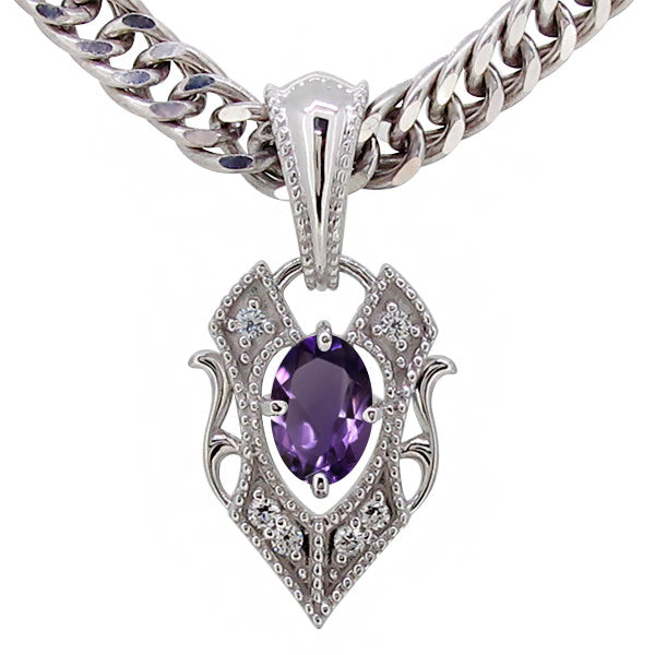 誕生石7石・キュービックジルコニアを使用した、馬蹄(ホースシュー)モチーフのメンズネックレス(ペンダント)です。人気の喜平チェーンと合わせても、印象的で存在感を放ちます。