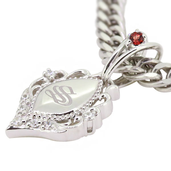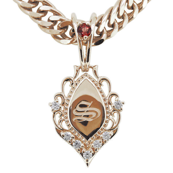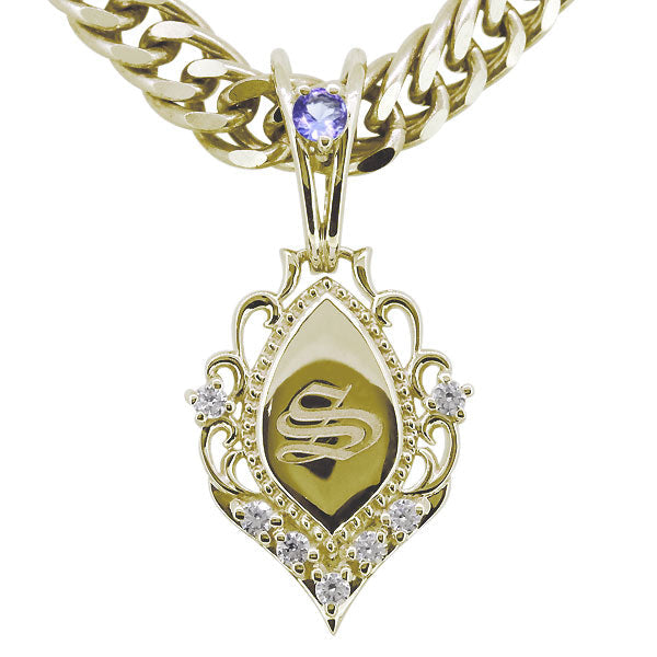 誕生石12石を使用した、イニシャル入りメンズネックレス(ペンダント)です。洗練されたシルエットが印象的で存在感を放ちます。人気の喜平チェーンを使用し、贅沢なネックレスに仕上げました。