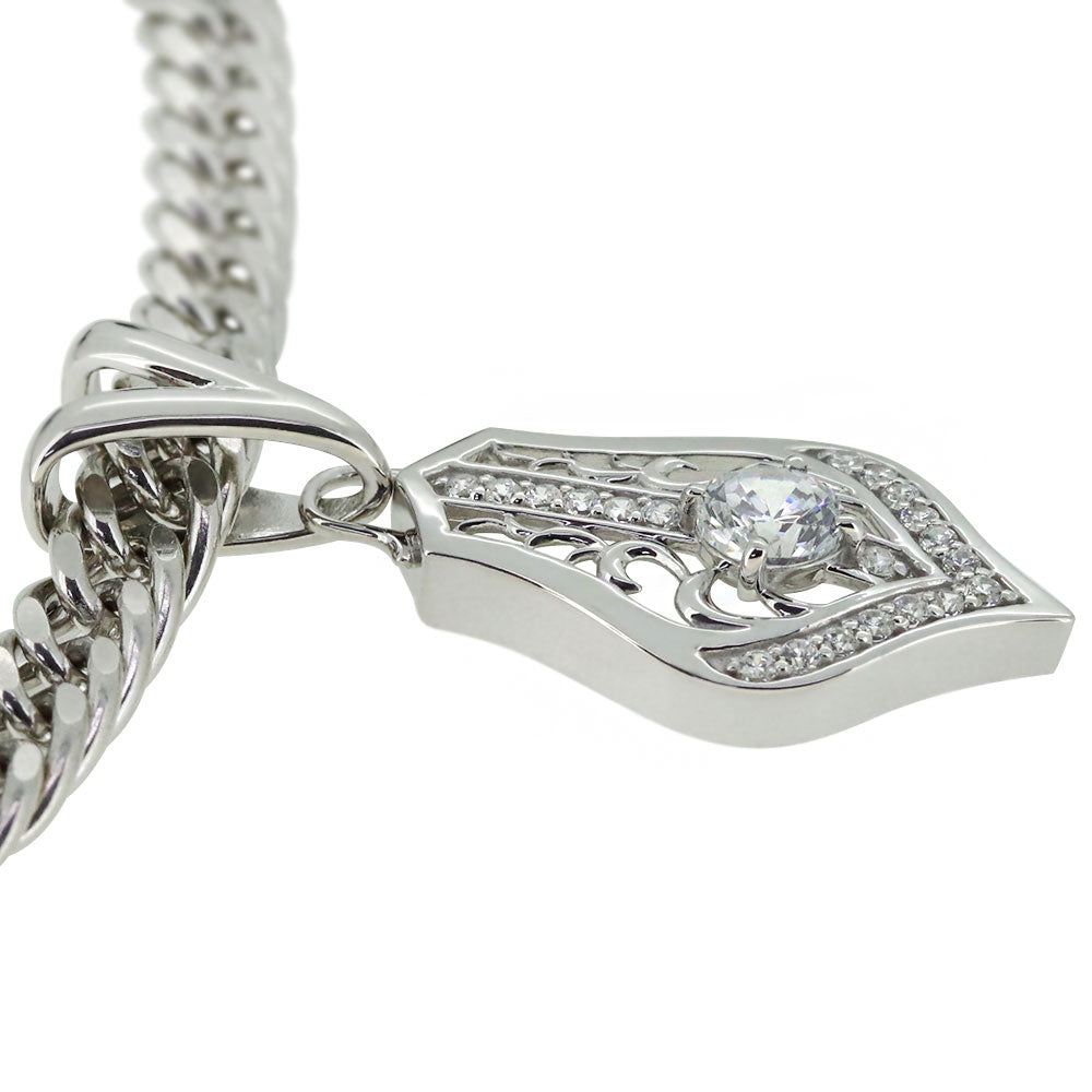 誕生石12石を使用した、トライバル(唐草)デザインのメンズネックレス(ペンダント)です。ダイヤモンドの輝きを贅沢に、品格を上げるペンダント。細部までこだわった美しさと高級感があり、大人の男性の魅力を引き出してくれるアイテムです。人気の喜平チェーンを使用し、贅沢なネックレスに仕上げました。