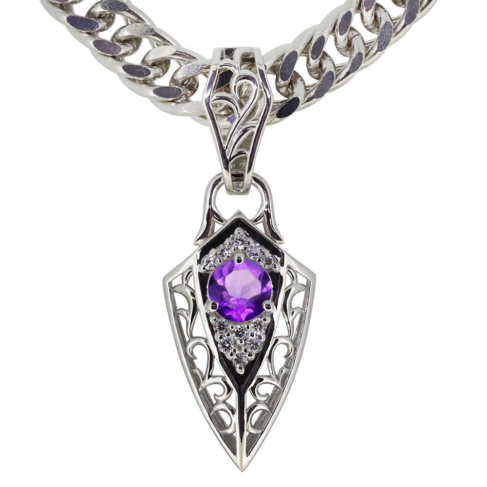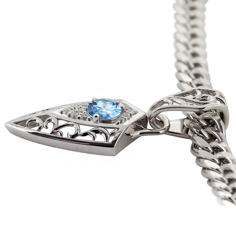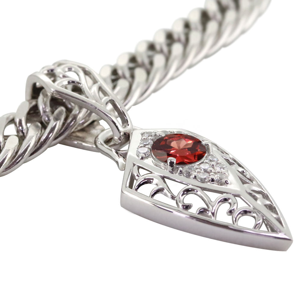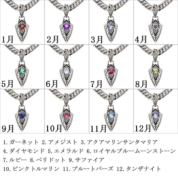 誕生石12石を使用した、トライバル(唐草)デザインのメンズネックレス(ペンダント)です。エッジを効かせたフィルム。人気の喜平チェーンを合わせ、存在感のある洗練されたデザインが魅力的です。
