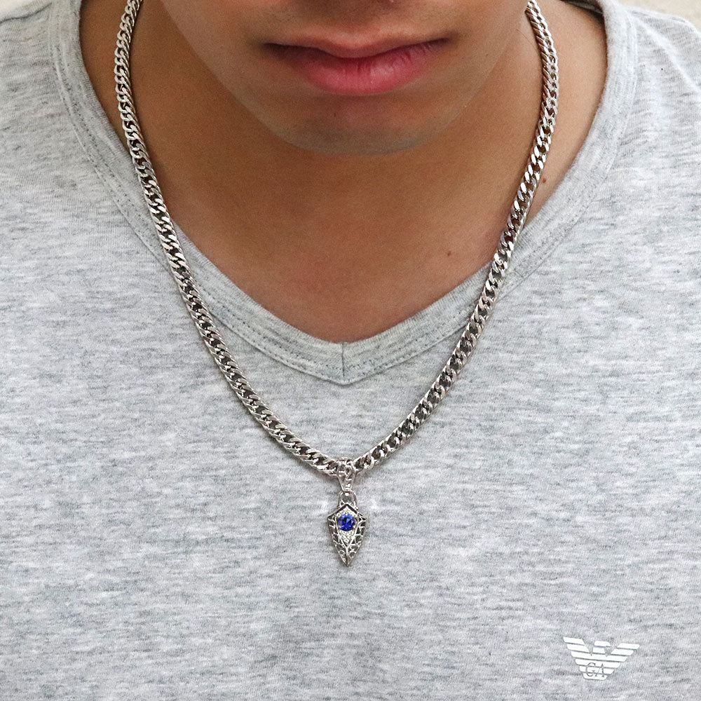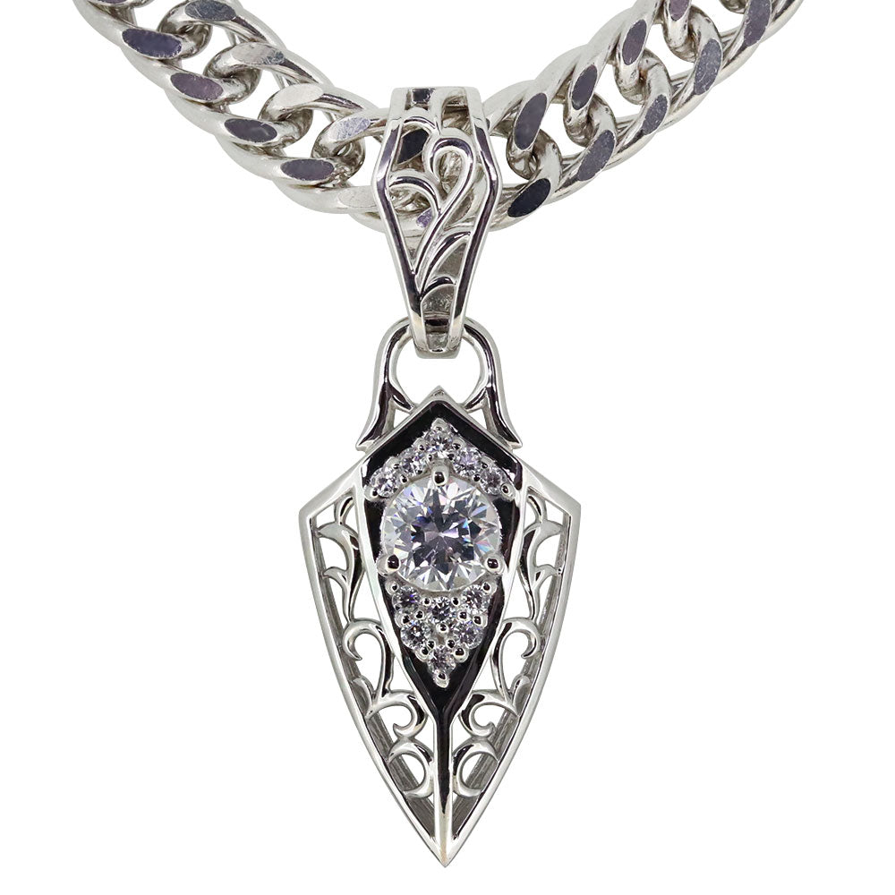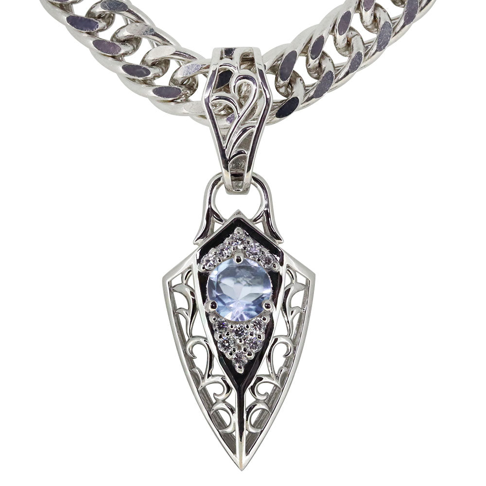 誕生石12石を使用した、トライバル(唐草)デザインのメンズネックレス(ペンダント)です。エッジを効かせたフィルム。人気の喜平チェーンを合わせ、存在感のある洗練されたデザインが魅力的です。