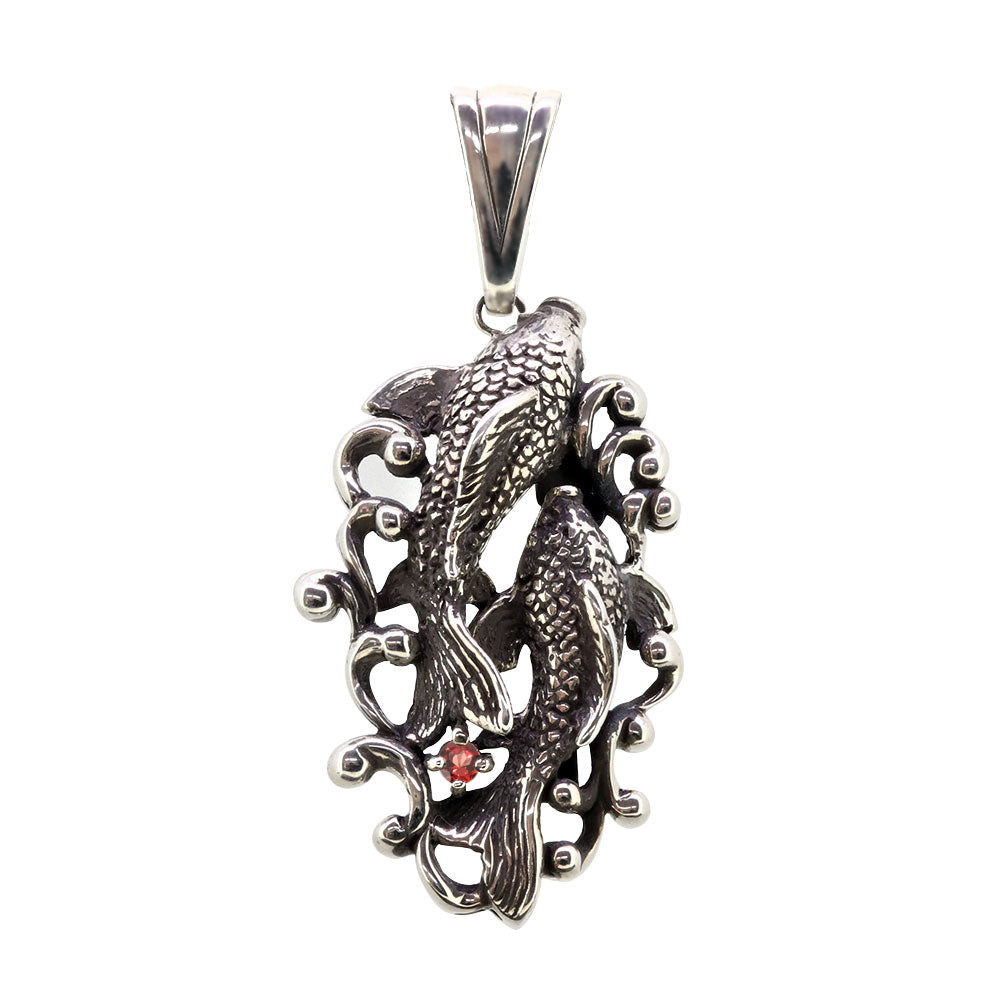 誕生石12石を使用した、鯉モチーフのメンズペンダントトップです。細部にまでこだわって作りこまれたオリジナルのデザイン。躍動感溢れる二匹の鯉が存在感を放ち目を引きます。鯉は金運・成功運・商売繁盛のご利益があるとされていて、不老長寿の象徴とも考えられとても縁起がよいとされています。