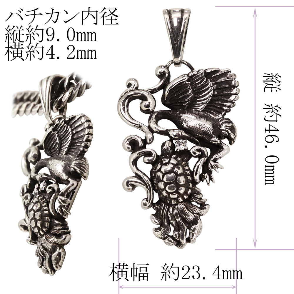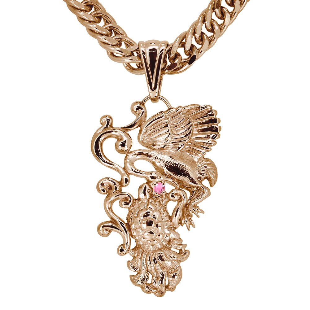 和柄 ペンダント 喜平50g用 メンズ 鶴 亀 長寿 縁起物 選べる誕生石 天然石 キヘイ 和風 k10 k18 pt900 sv925 鶴亀 ツル カメ ネックレス (品番 mh-0403)