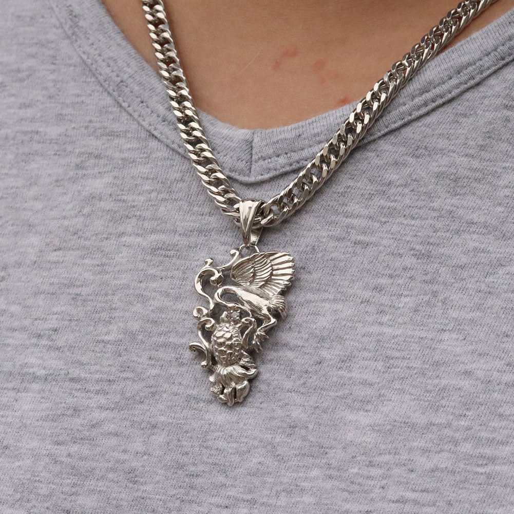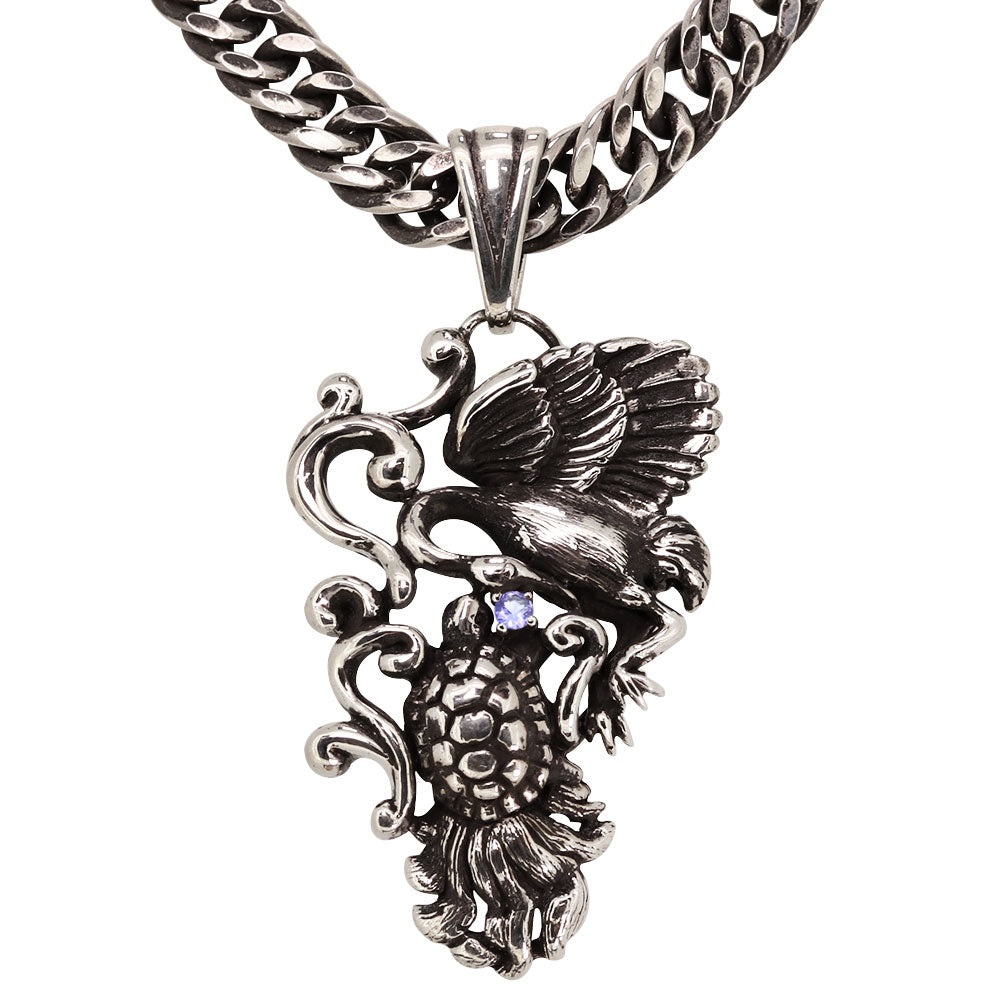 誕生石12石使用した、鶴と亀モチーフのメンズネックレス(ペンダント)です。細部にまでこだわって作りこまれたオリジナルのデザイン。胸元で煌びやかに輝き、存在感を放ちます。鶴と亀は長寿を象徴するめでたい生き物であるとされています。そのため、縁起物として親しまれています。長寿祝い、敬老の日の贈り物にもおすすめです。