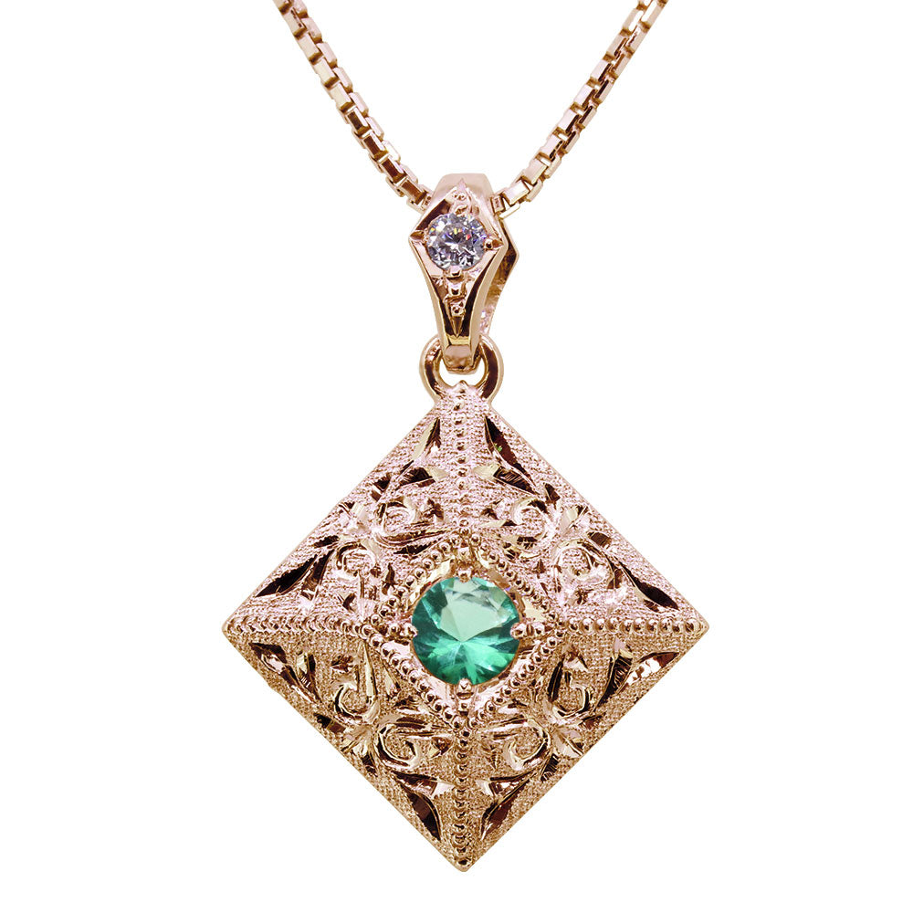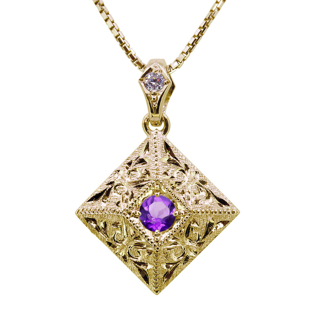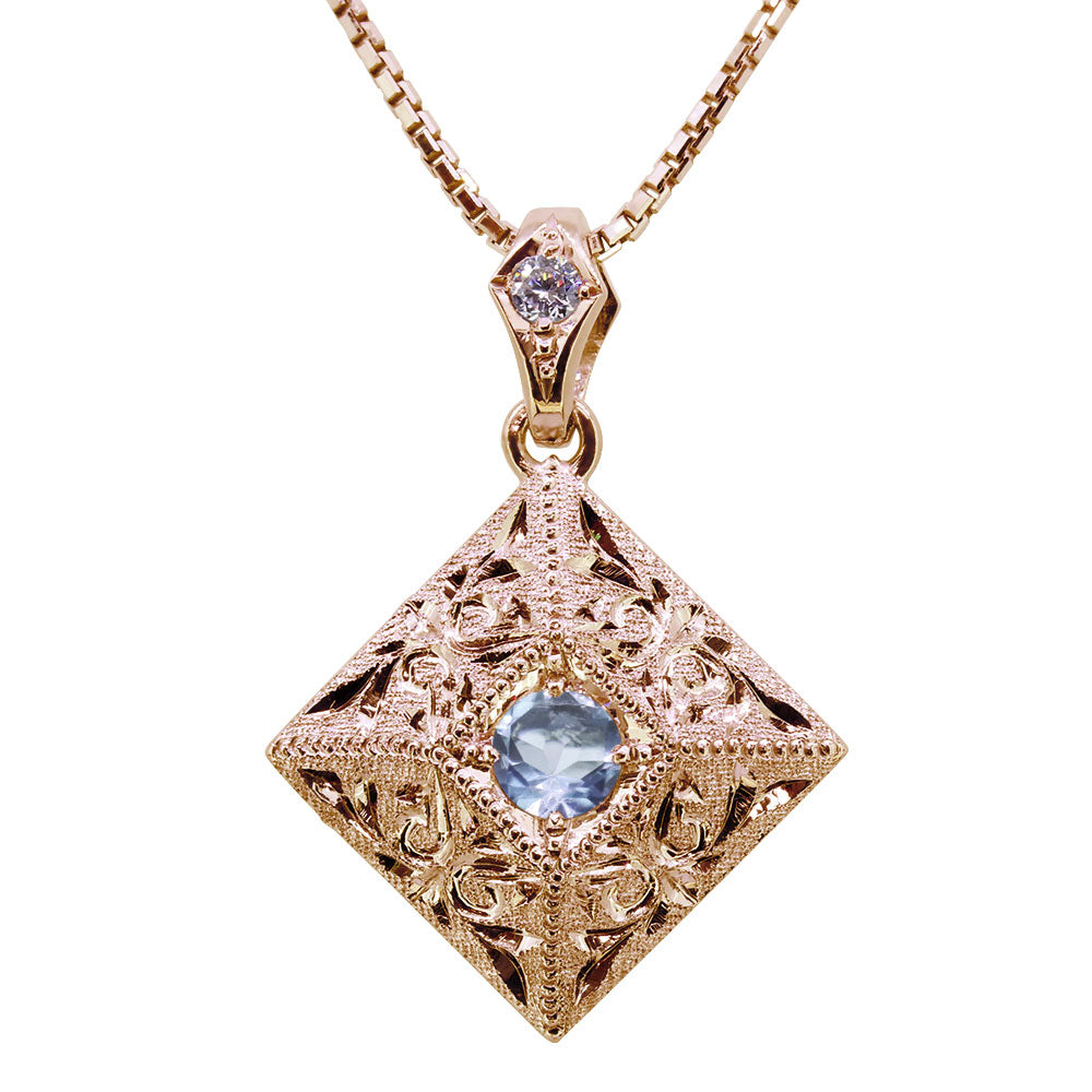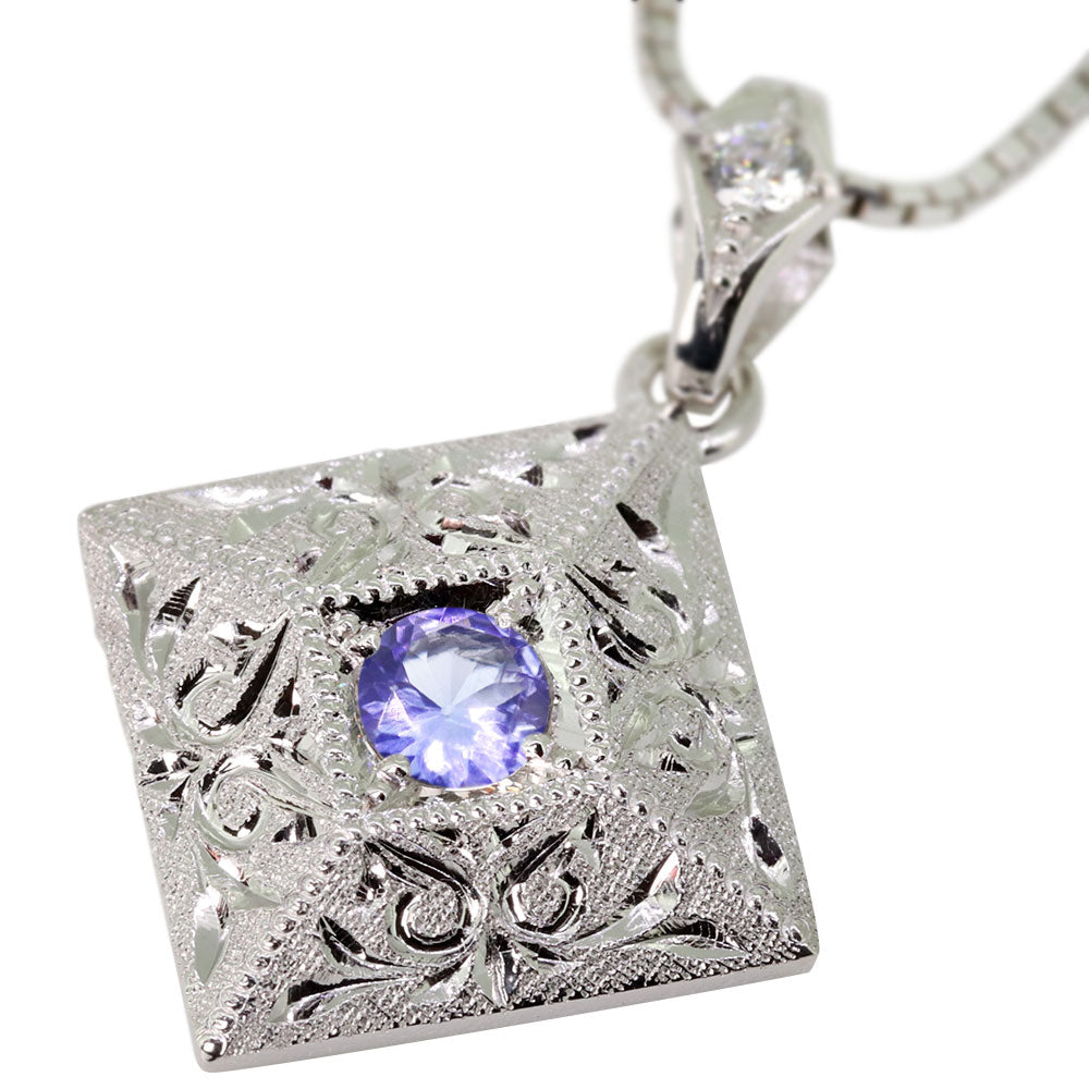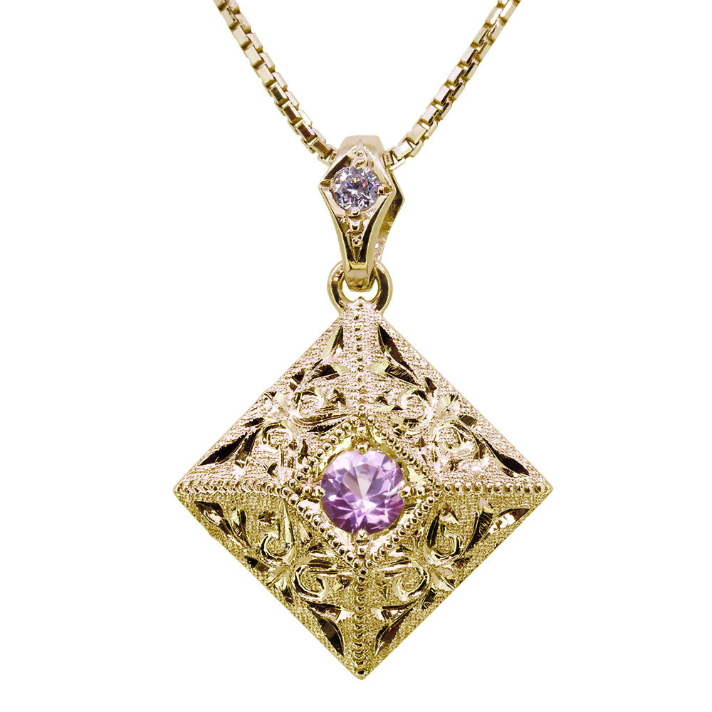 レディース ネックレス 唐草 スクエア 誕生石 彫金 10金 18金 プラチナ シルバー 天然石 手彫り アラベスク 洋彫り 選べる誕生石