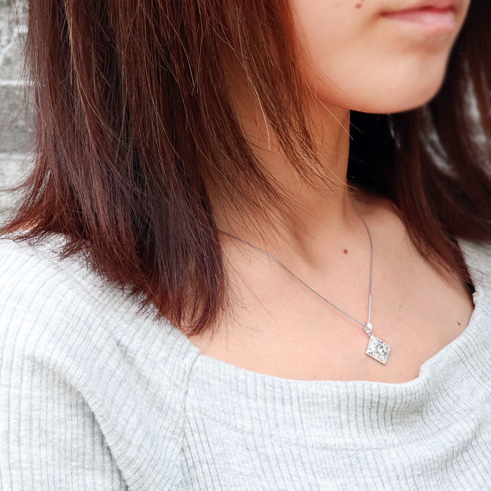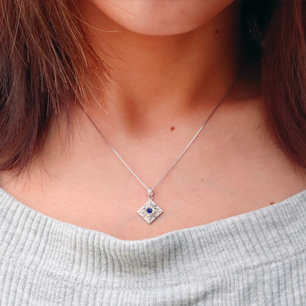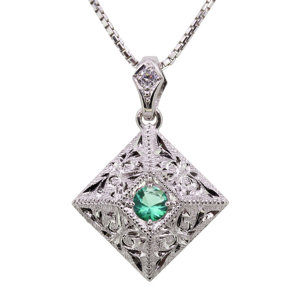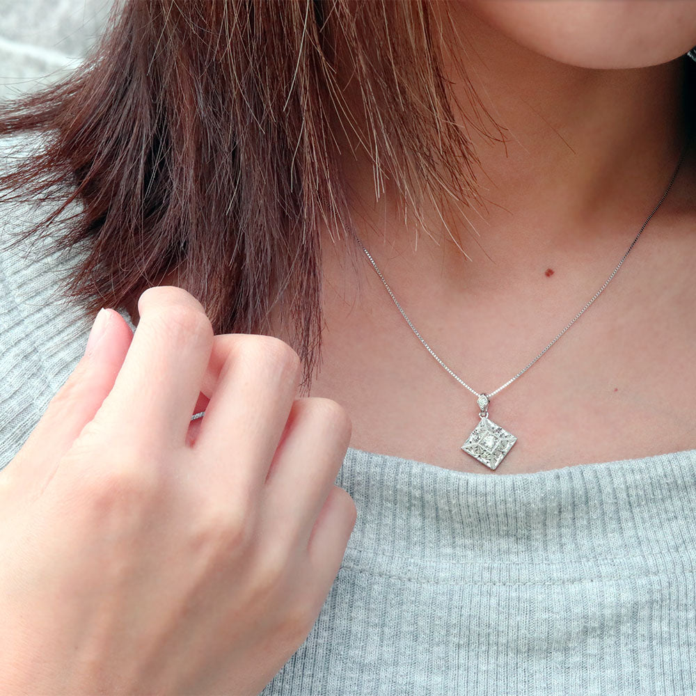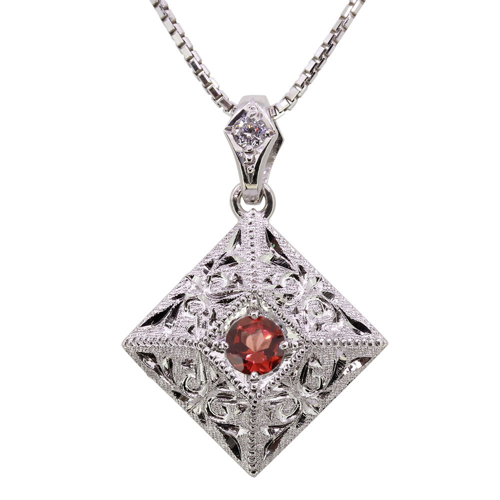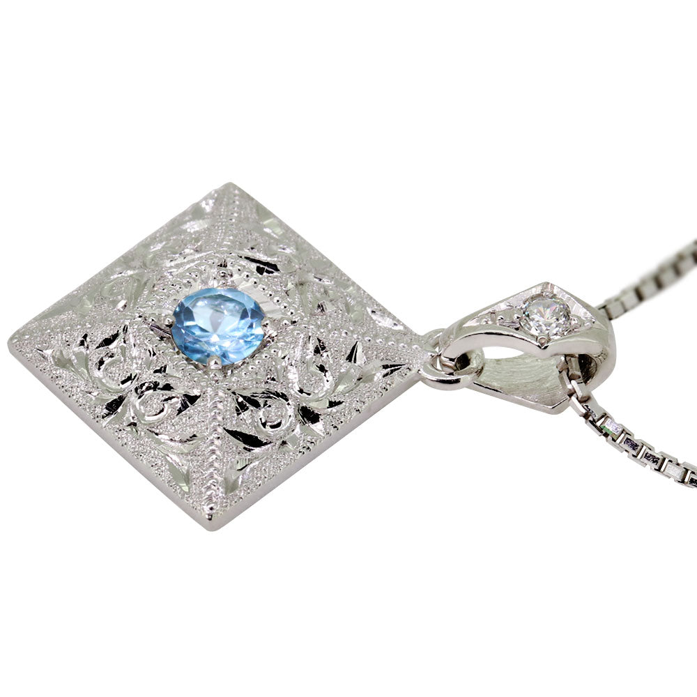レディース ネックレス 唐草 スクエア 誕生石 彫金 10金 18金 プラチナ シルバー 天然石 手彫り アラベスク 洋彫り 選べる誕生石