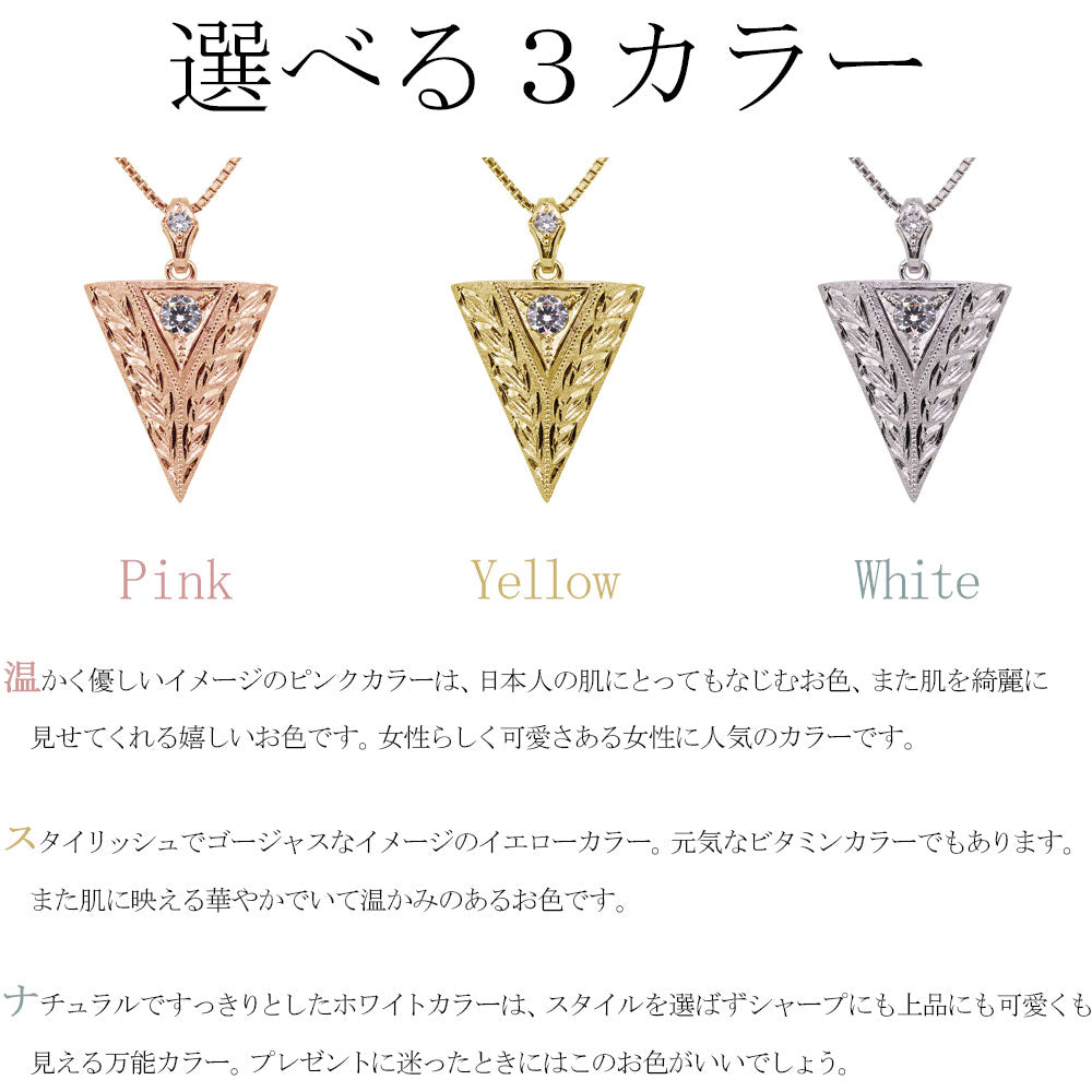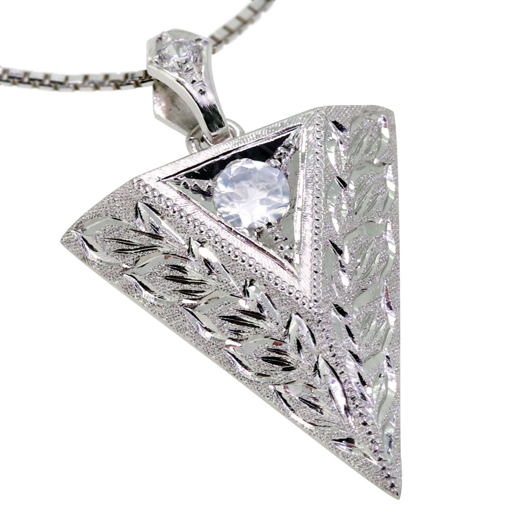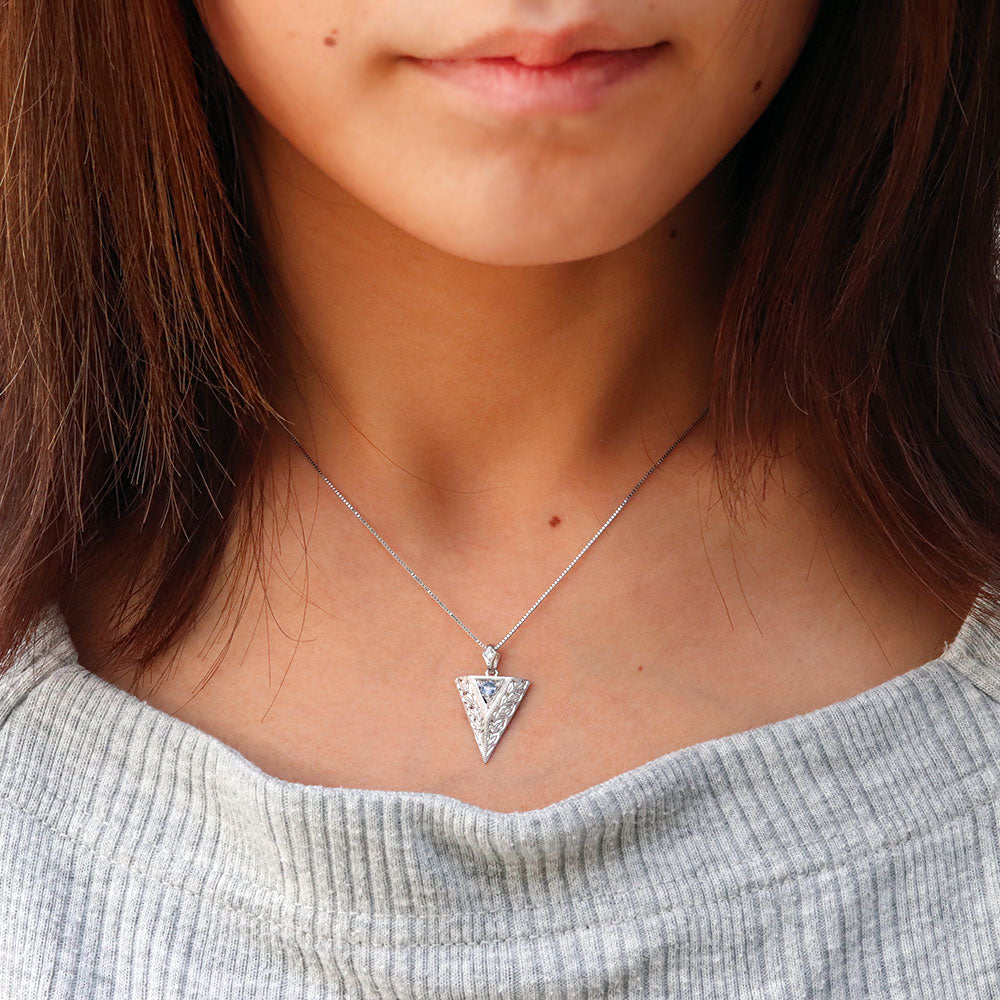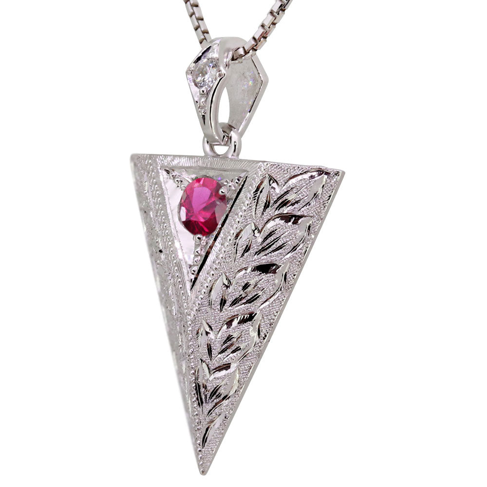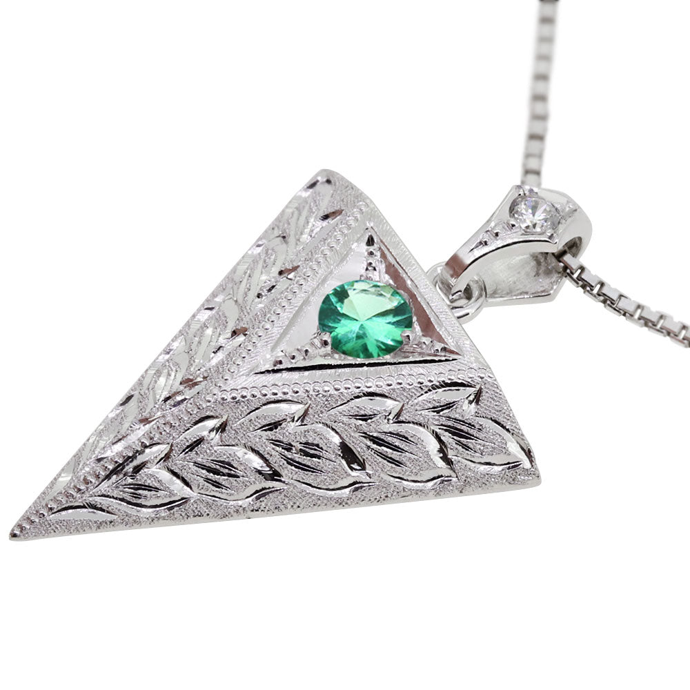 ネックレス トライアングル レディース k10 k18 pt900 sv925 誕生石 三角形 彫金 手彫り 天然石 洋彫り 選べる誕生石