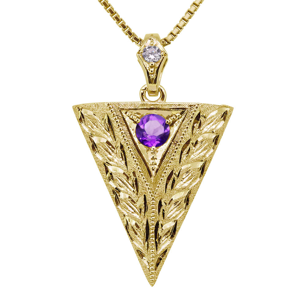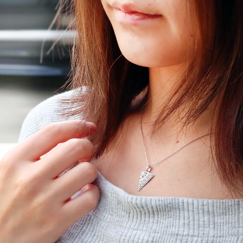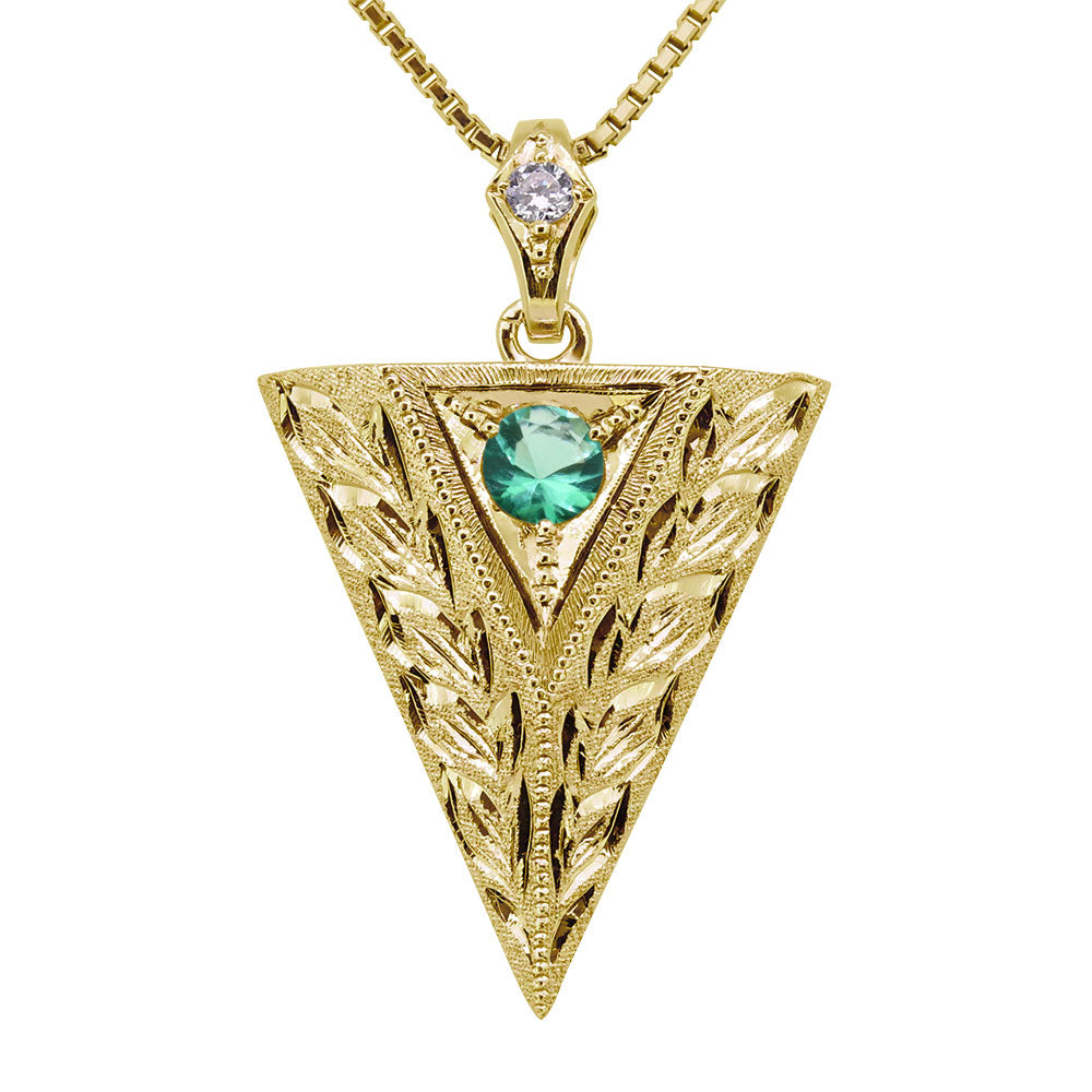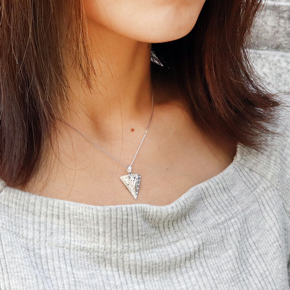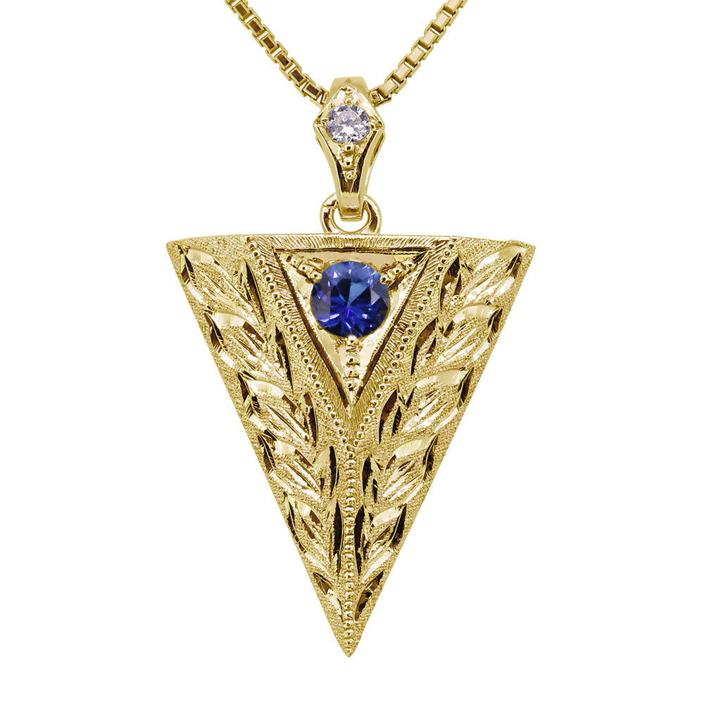 ネックレス トライアングル レディース k10 k18 pt900 sv925 誕生石 三角形 彫金 手彫り 天然石 洋彫り 選べる誕生石