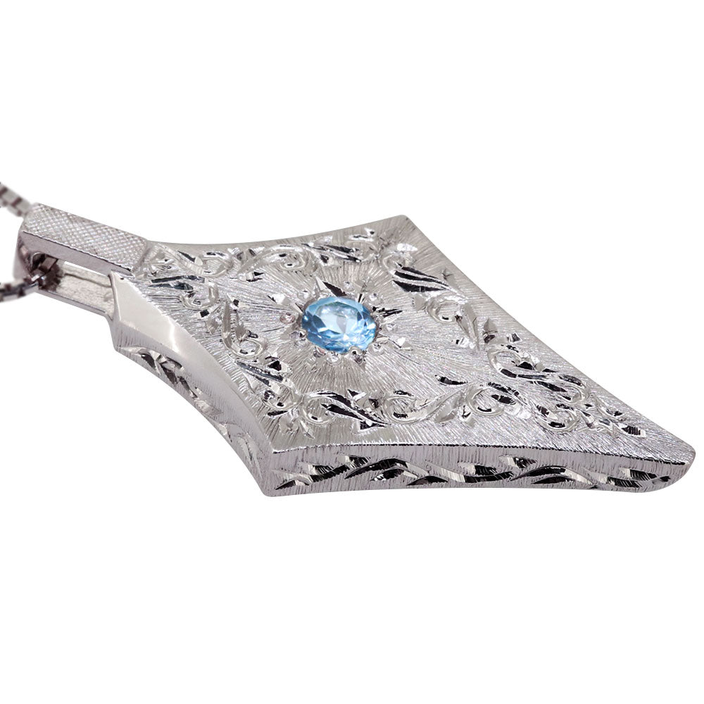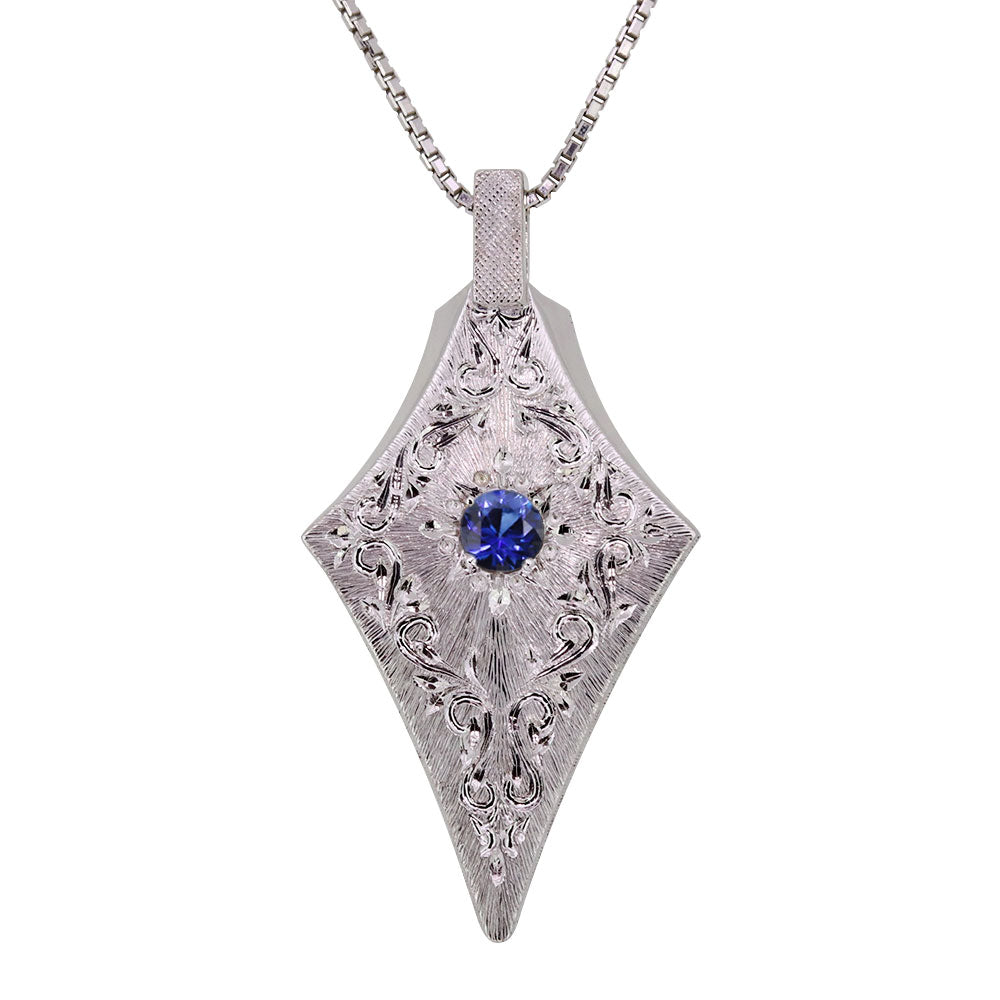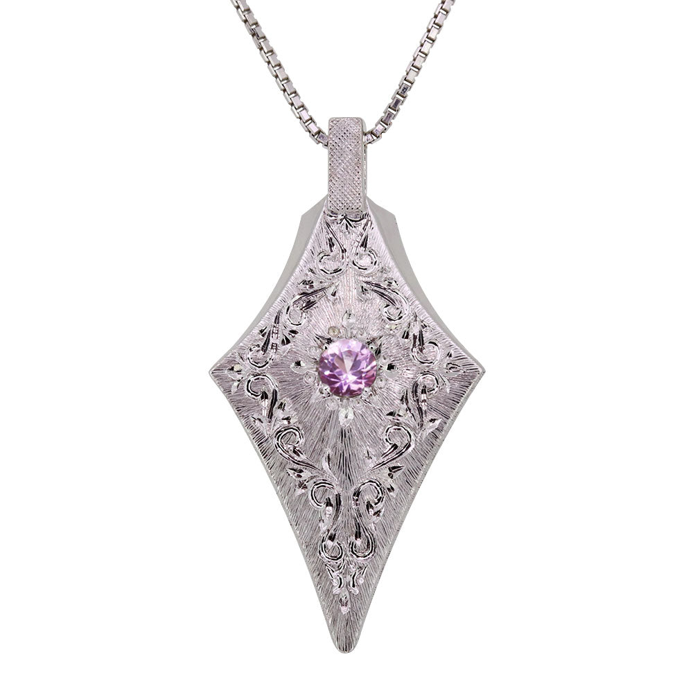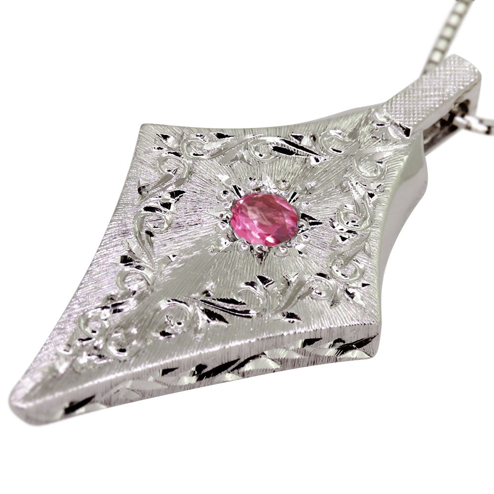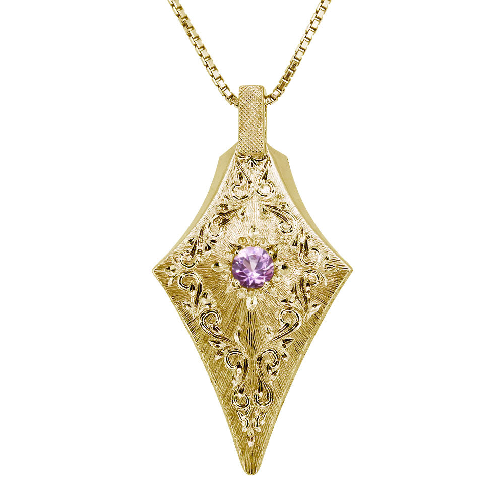 ペンダント メンズ ひし形 唐草 彫金 K10 K18 PT900 SV925 誕生石 天然石 手彫り アラベスク 洋彫り 選べる誕生石 ネックレス
