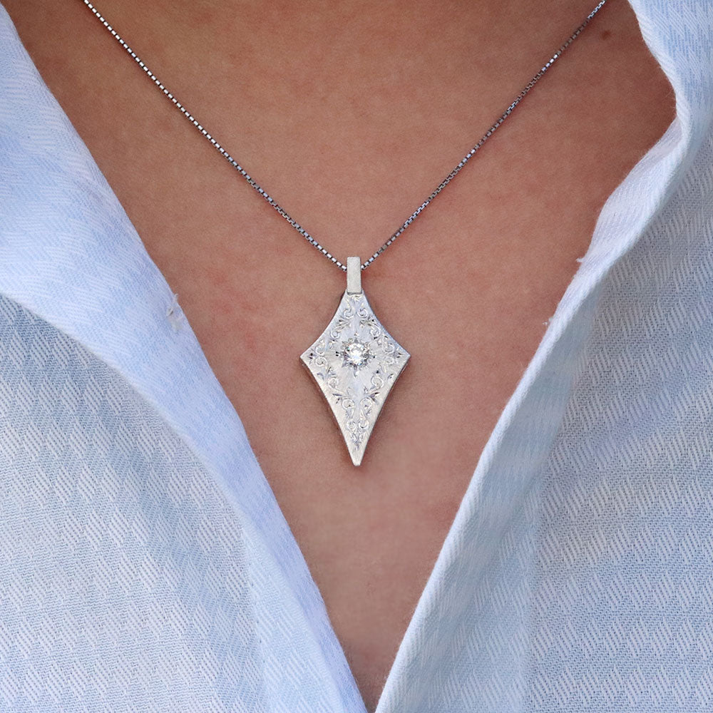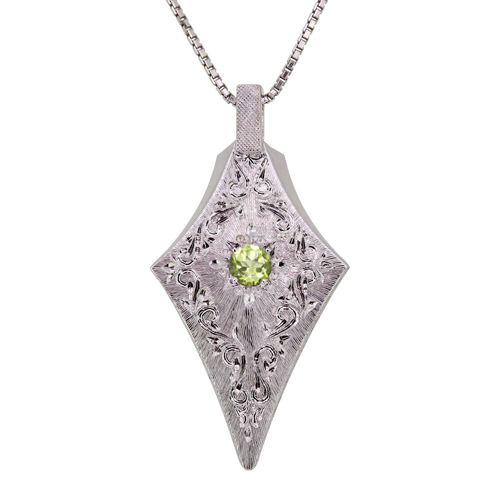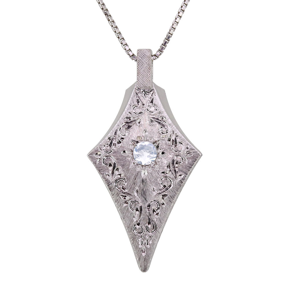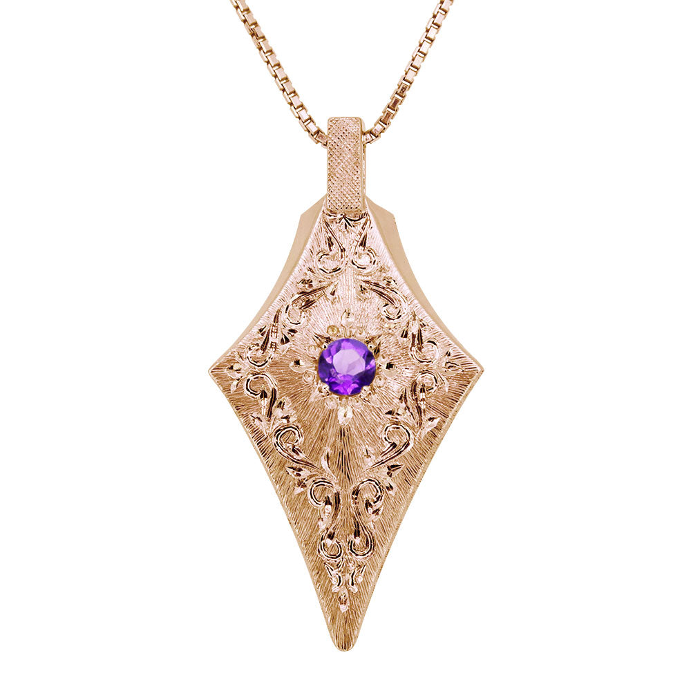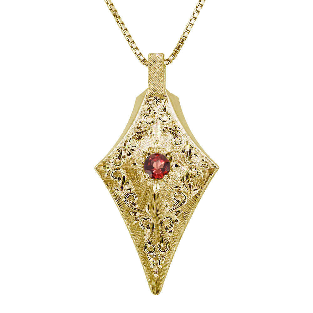 ペンダント メンズ ひし形 唐草 彫金 K10 K18 PT900 SV925 誕生石 天然石 手彫り アラベスク 洋彫り 選べる誕生石 ネックレス