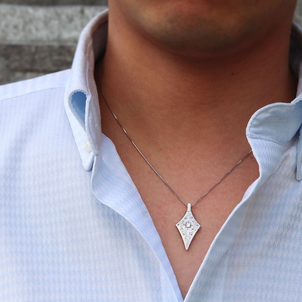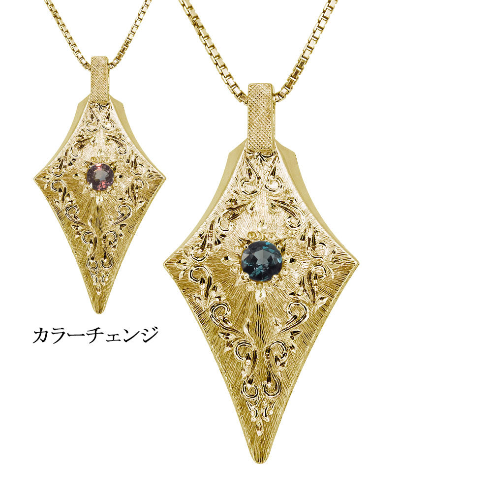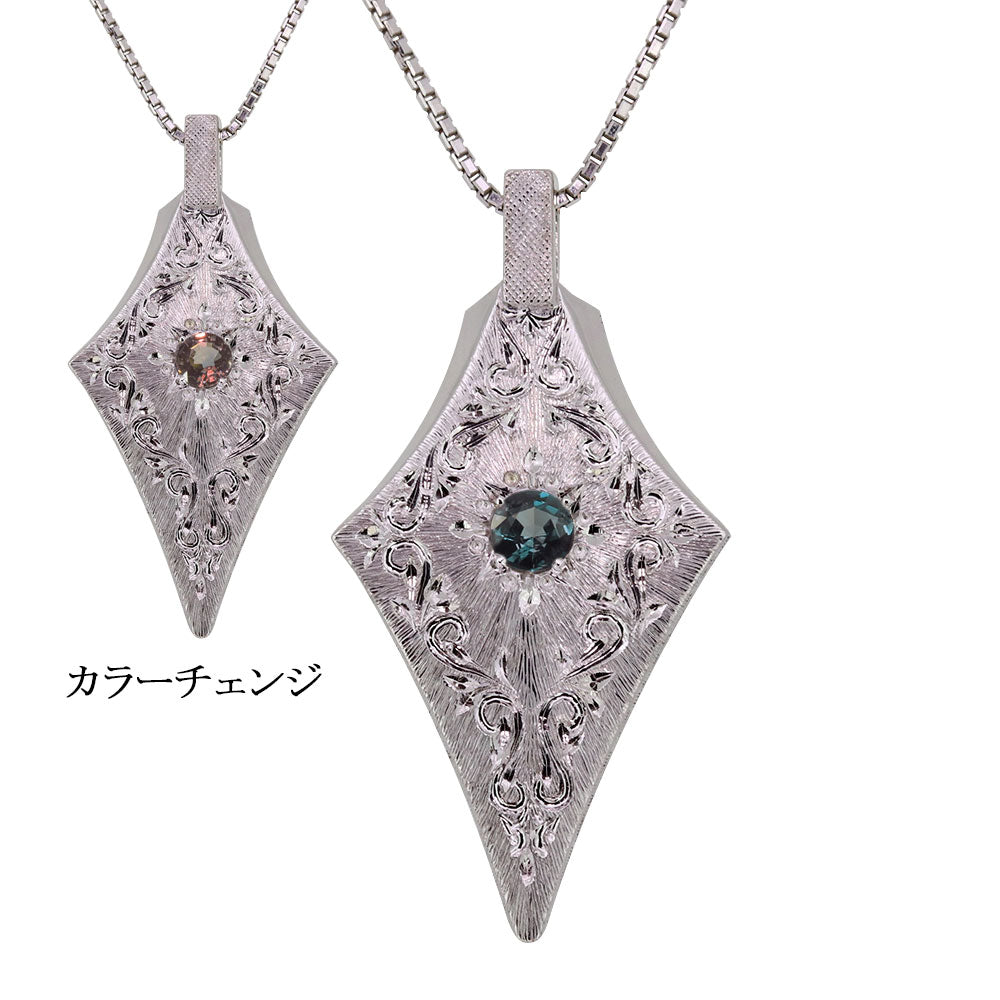 誕生石13石・希少石アレキサンドライトを使用した、メンズネックレス(ペンダント)です。ハワイアンジュエリーとは一味違う洋彫りジュエリー。職人が細部にまでこだわり繊細に仕上げたオリジナルのデザインです。洗練されたデザインが印象的で存在感を放ちます。