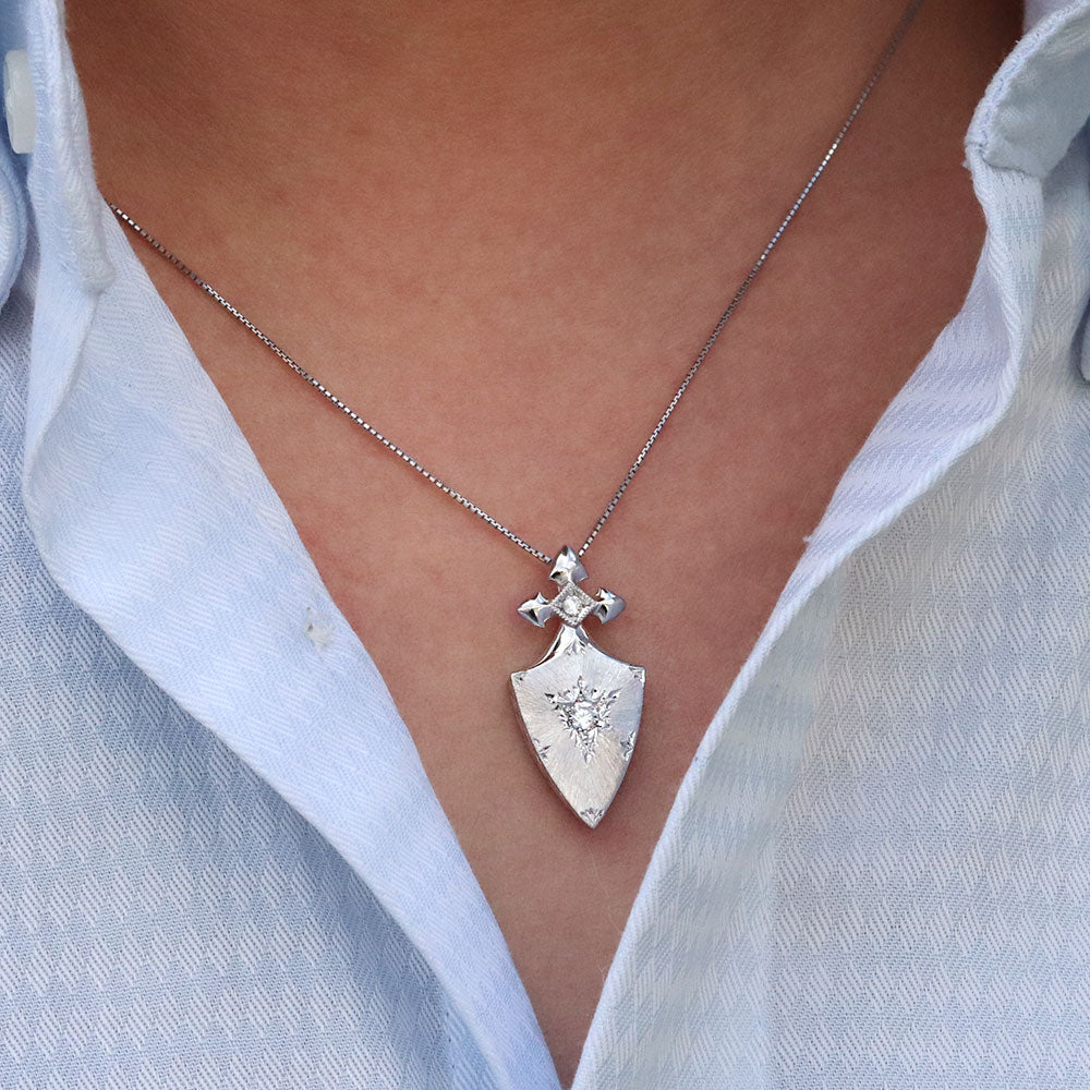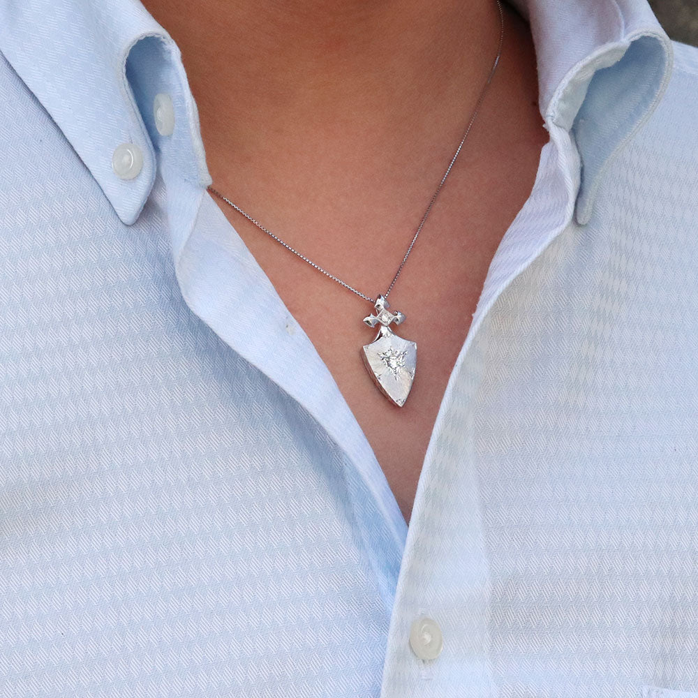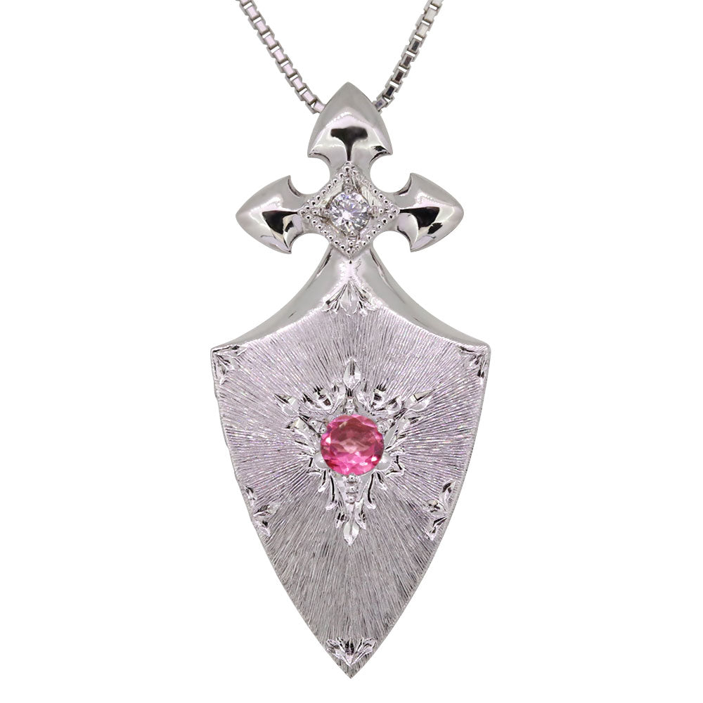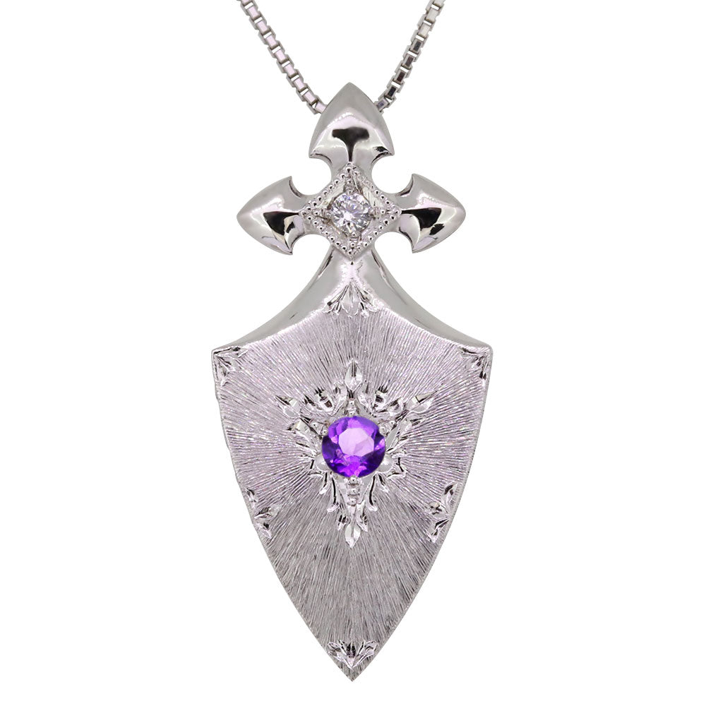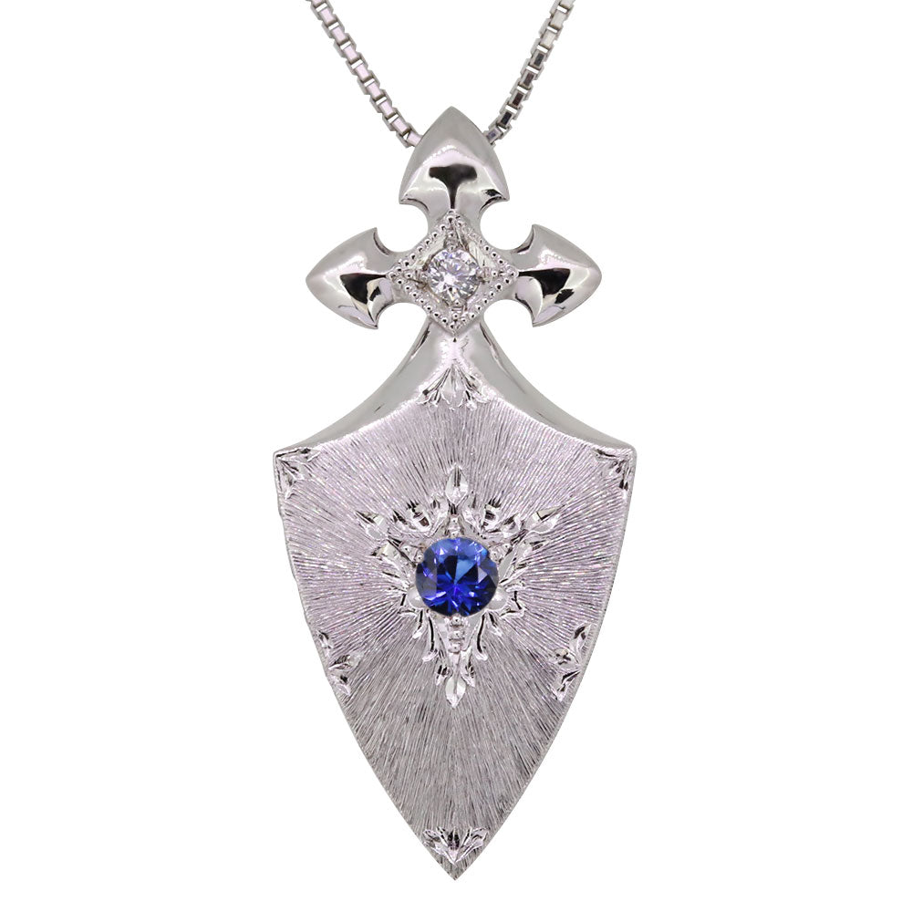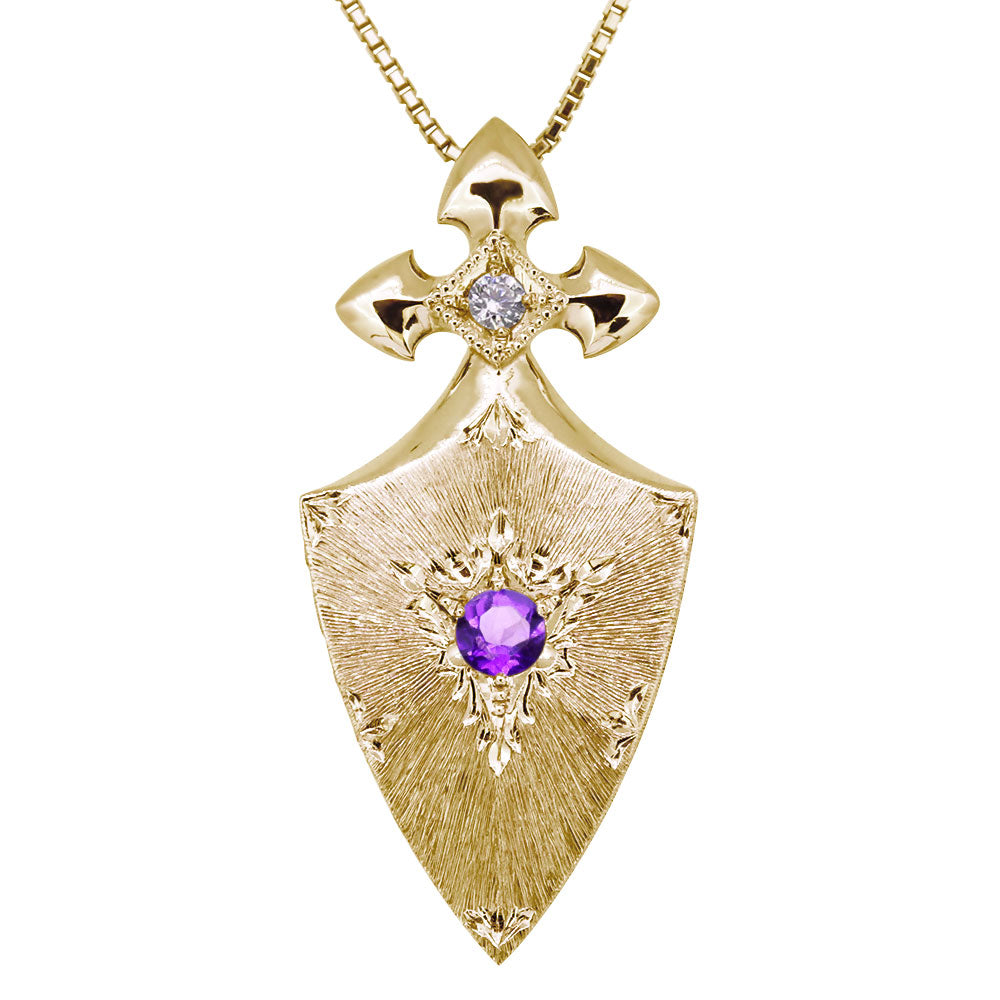 メンズ ペンダント シールド 彫金 10金 18金 プラチナ シルバー 誕生石 盾 十字架 ネックレス 手彫り ハワイアンジュエリー 洋彫り 選べる誕生石 天然石