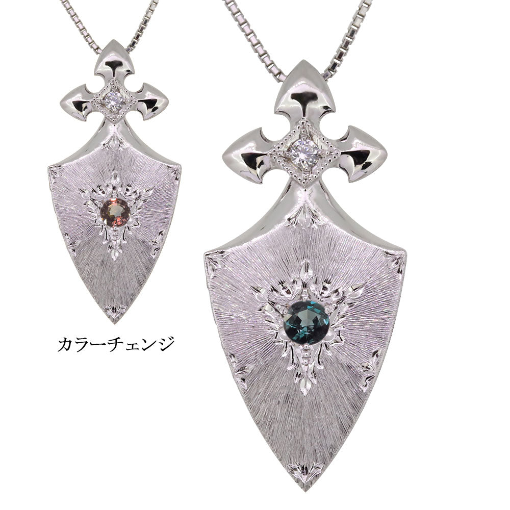 誕生石13石・アレキサンドライトを使用した、メンズネックレス(ペンダント)です。ハワイアンジュエリーとは一味違う洋彫りジュエリー。職人が細部にまでこだわり繊細に仕上げたオリジナルのデザインです。洗練されたデザインが印象的で存在感を放ちます。