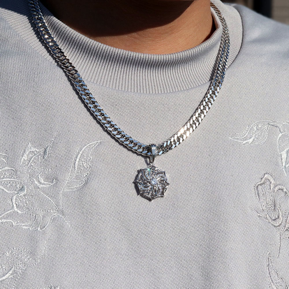 誕生石12石使用した、トライバル(唐草)デザインのメンズネックレス(ペンダント)です。高級感溢れる輝きで、存在感をプラスしてくれるアイテム。細部にまでこだわったオリジナルのデザインです。