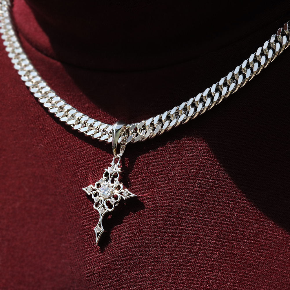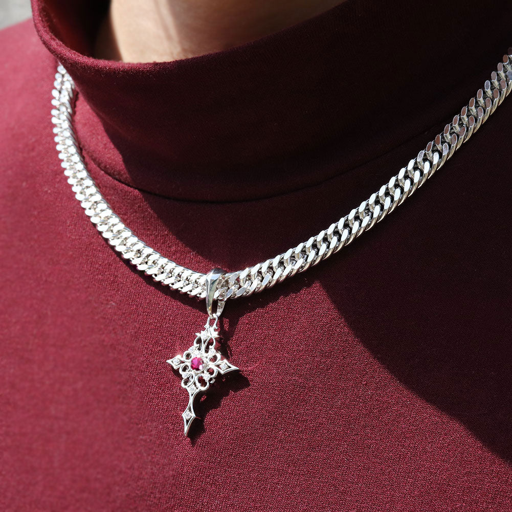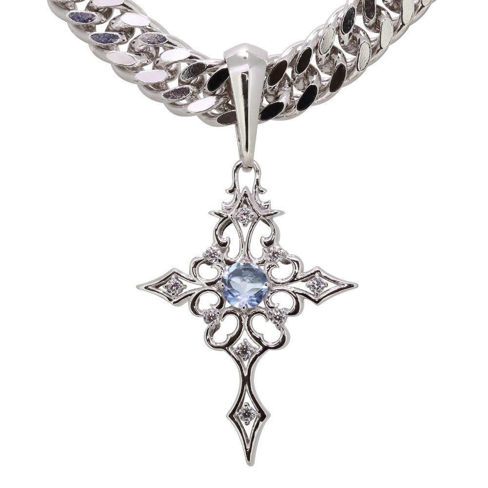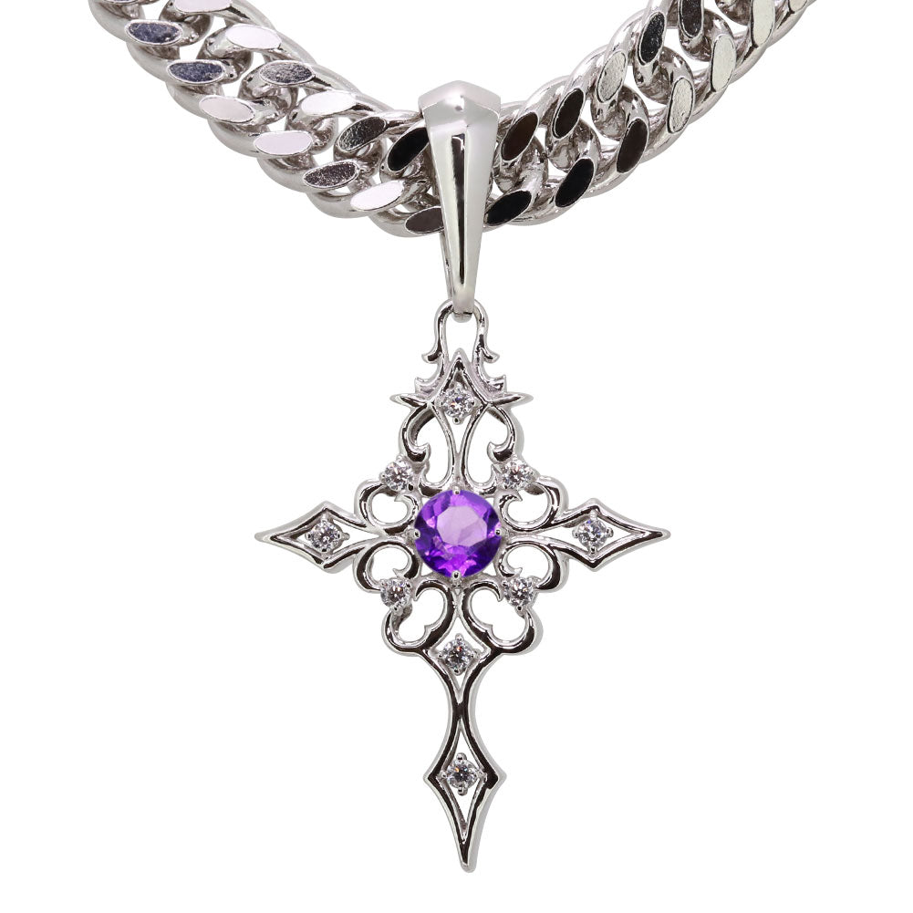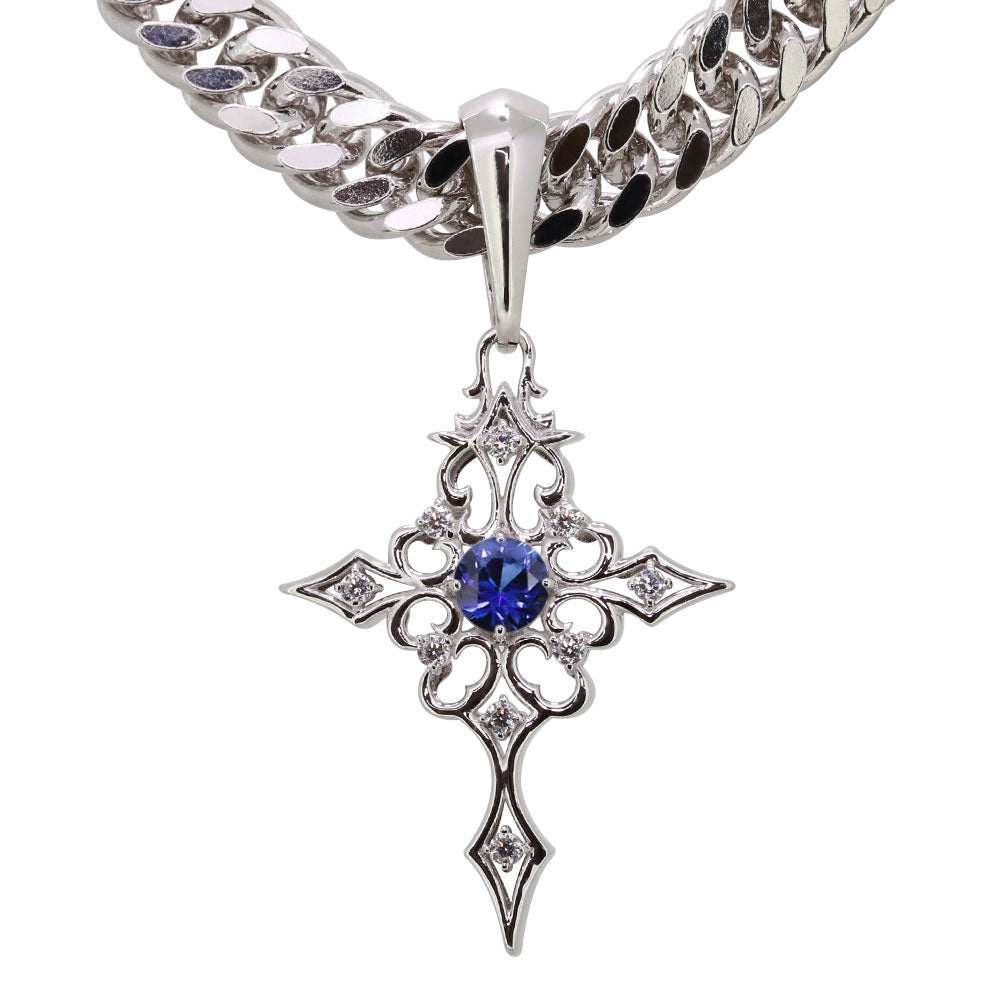 誕生石12石を使用した、クロス(十字架)モチーフの、メンズネックレス(ペンダント)です。細部にまでこだわった、大人の魅力が際立つネックレスに仕上がっています。高級感があり、胸元で煌びやかに輝きます。