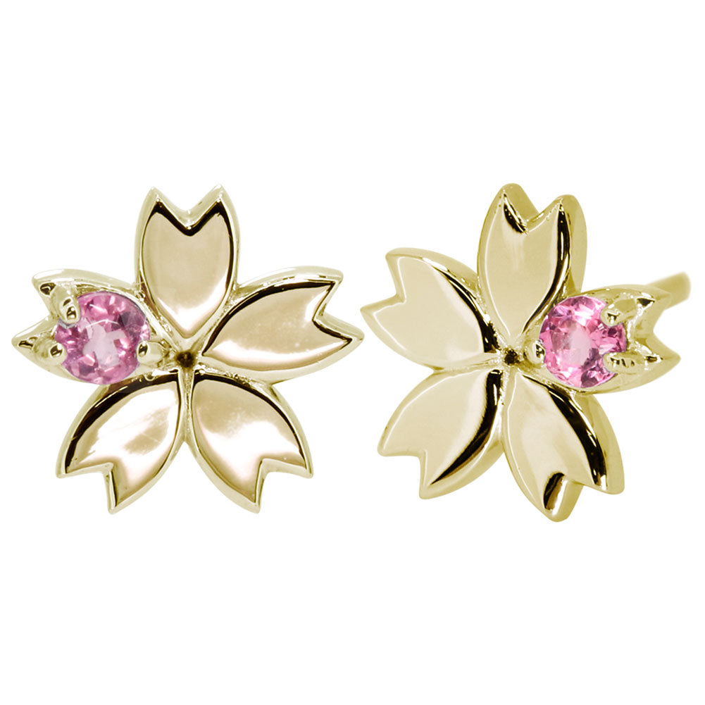 ピアス レディース 桜 サクラ 選べる誕生石 人気 10金 18金 プラチナ シルバー フラワー さくら 花 天然石 スタッド 一粒 両耳 sakura pierce
