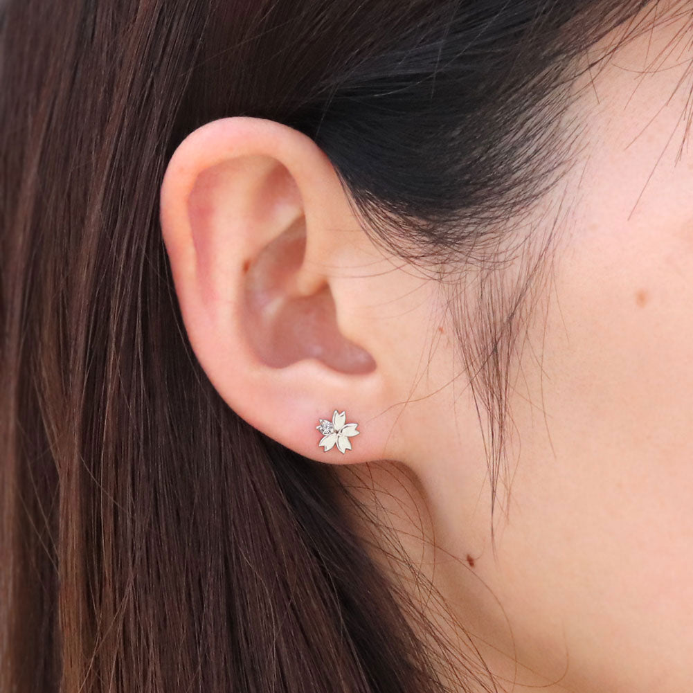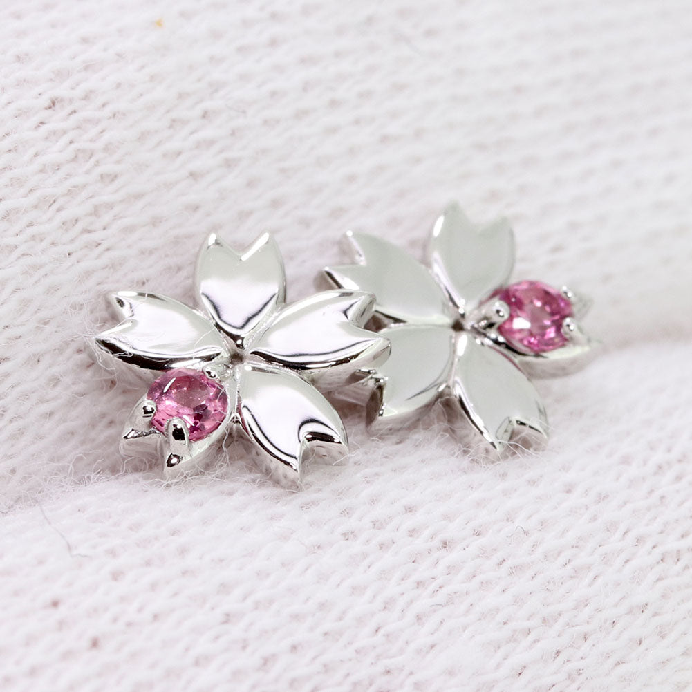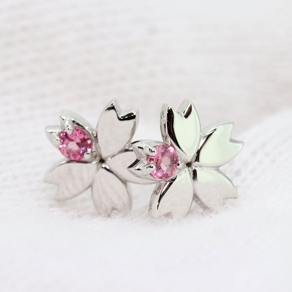 誕生石12石を使用した、桜(フラワー)モチーフのスタッドピアスです。明るく華やかに演出してくれる可愛らしい桜の花デザインで、プレゼントなどにもおすすめです。